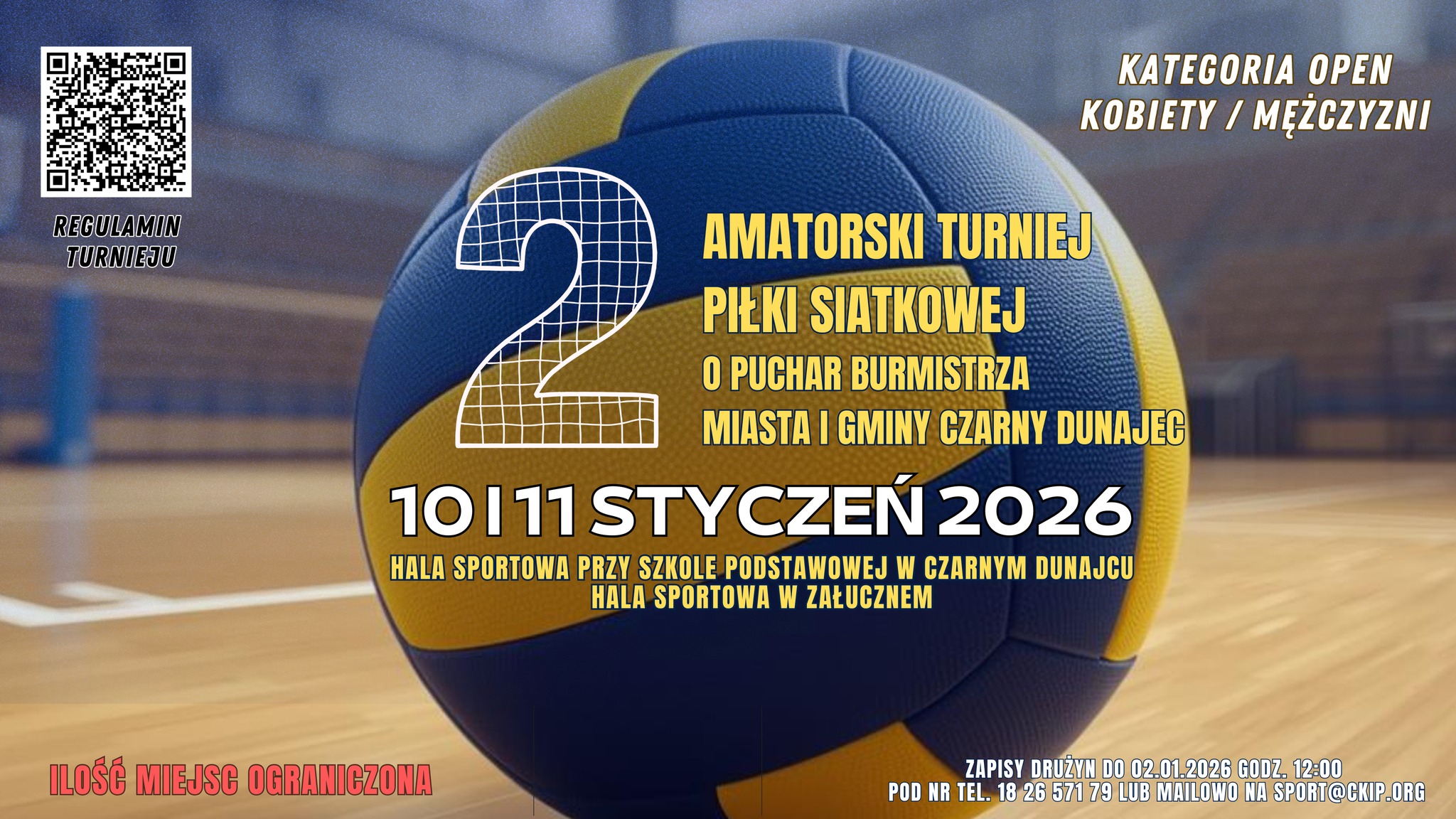 W sobotę i niedzielę 10-11.01 odbędzie się druga edycja Amatorskiego Turnieju Piłki Siatkowej o Puchar Burmistrza Miasta i Gminy Czarny Dunajec.