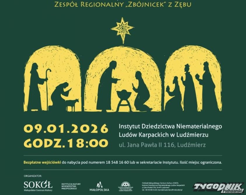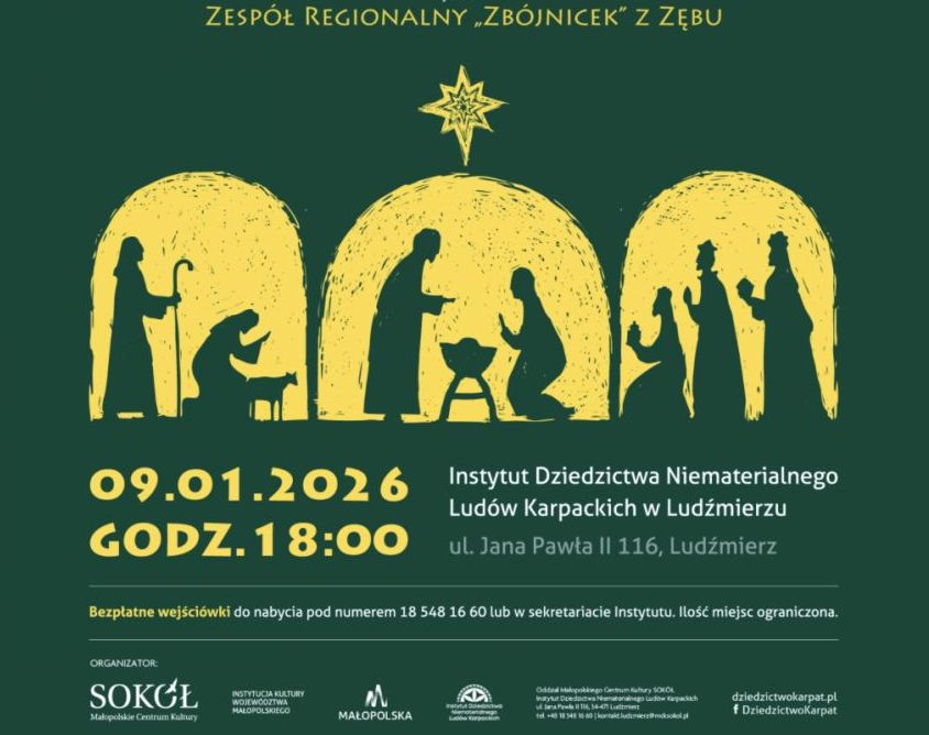 Małopolskie Centrum Kultury SOKÓŁ oraz Zespół Regionalny Zbójnicek zapraszają na spektakl "Stajenka na Włosienicy. Opowieść dziadka o narodzeniu Jezusa".