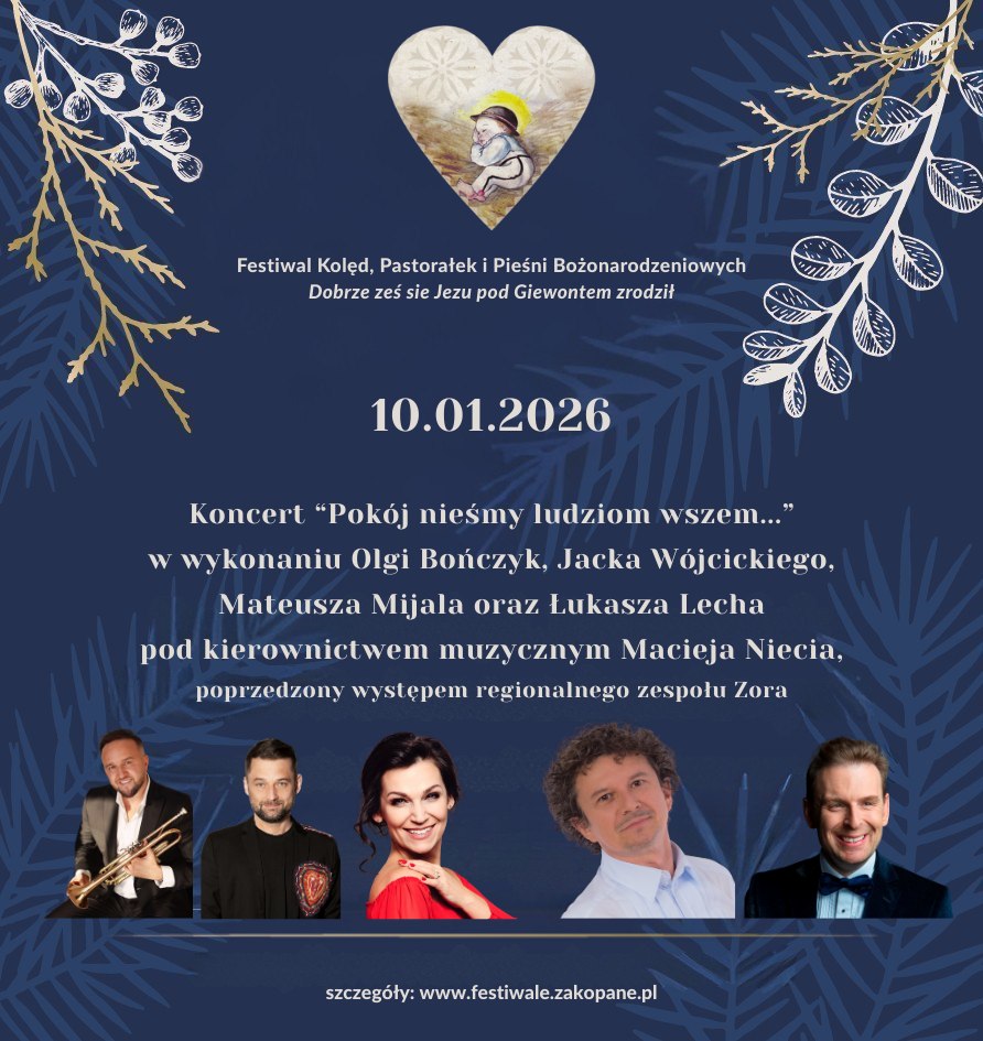 Zapraszamy na koncert w ramach Festiwalu Kolęd, Pastorałek i Pieśni Bożonarodzeniowych "Dobrze żeś się Jezu pod Giewontem zrodził".