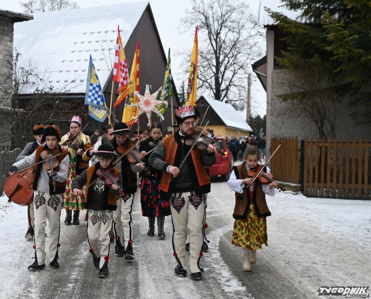 Orszak Trzech Króli wyruszył zaraz po Mszy św. i przeszedł ulicami Chochołowa w kierunku remizy. Górale nieśli wielkie chorągwie, ubrali nie tylko stroje regionalne, ale i specjalne korony przygotowane przez organizatorów marszu w całej Polsce. Mieli ze sobą także śpiewniki. Pomiędzy podhalańskimi chałupami roznosiły się też dźwięki kapeli regionalnej.