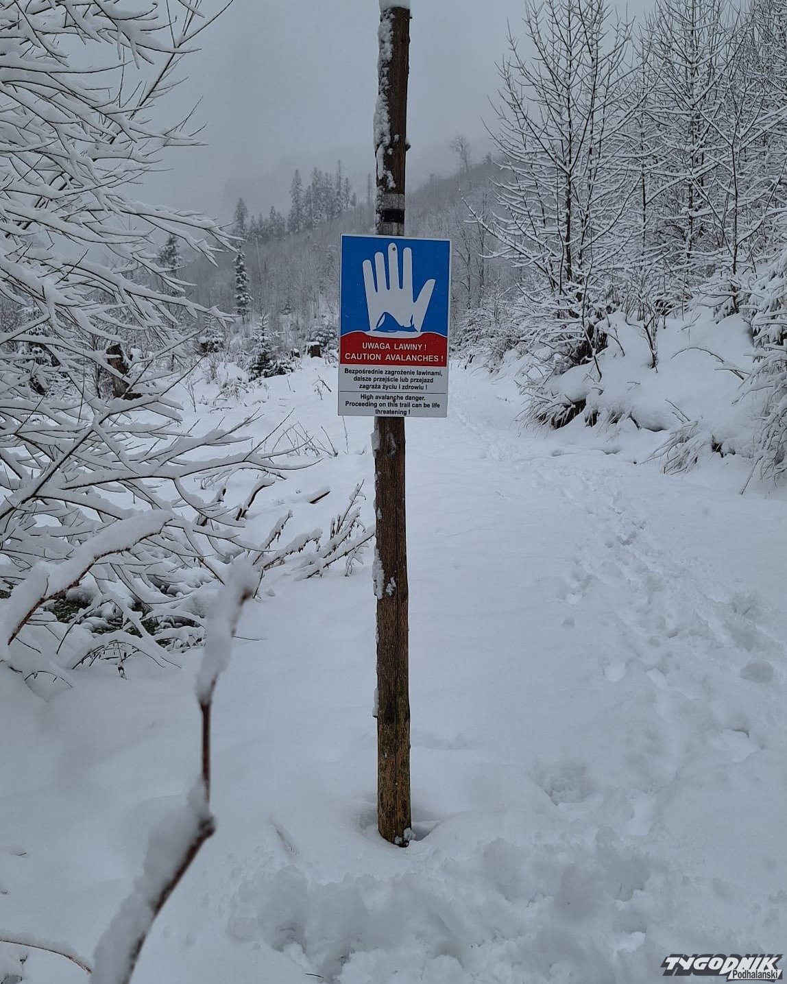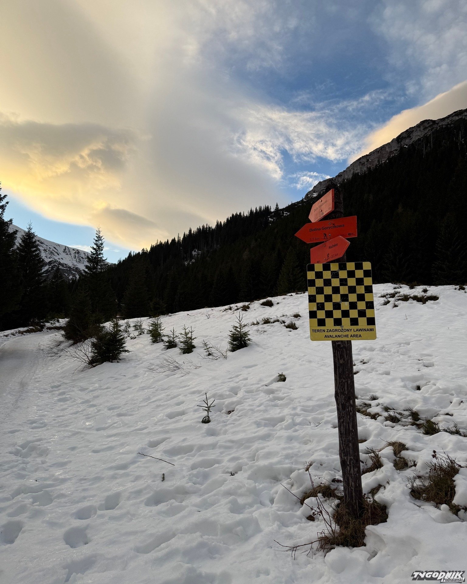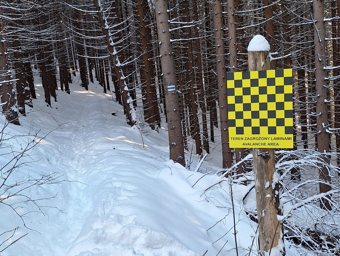 Tablice informują o zagrożeniu lawinowym.