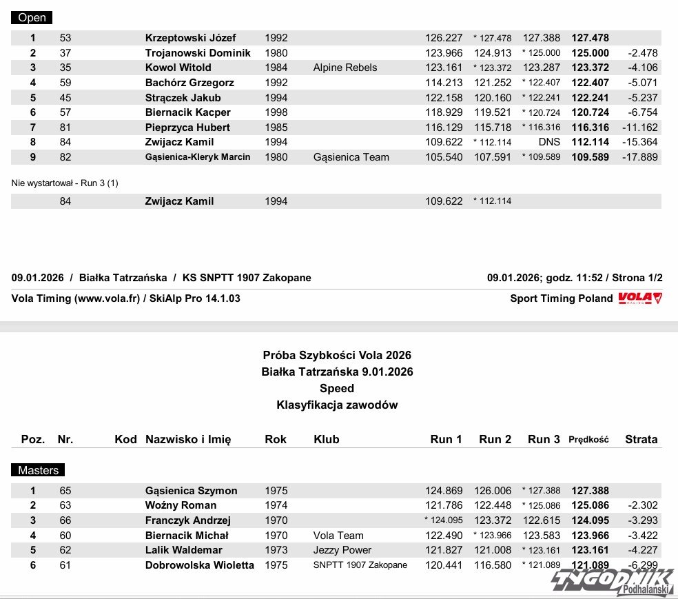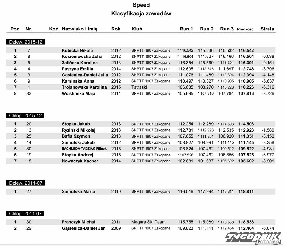 Przed laty inicjatorem zawodów był wieloletni polski rekordzista prędkości zjazdu na nartach, nieżyjący już Jacek Nikliński. Dziś po kilku latach przerwy udało się ponownie zorganizować Próbę Prędkości. Na świetnie przygotowanej trasie, przy siarczystym mrozie i świecącym słońcu, w Białce Tatrzańskiej na starcie stanęło kilkudziesięciu narciarzy i narciarek. Każdy z nich zaliczył trzy przejazdy. O kolejności decydowała największa prędkość w tych trzech startach.