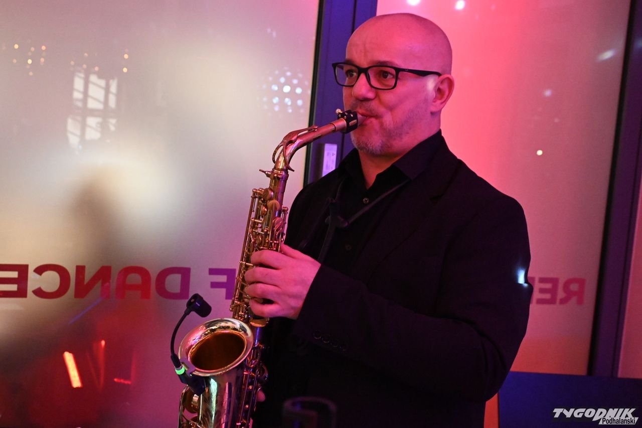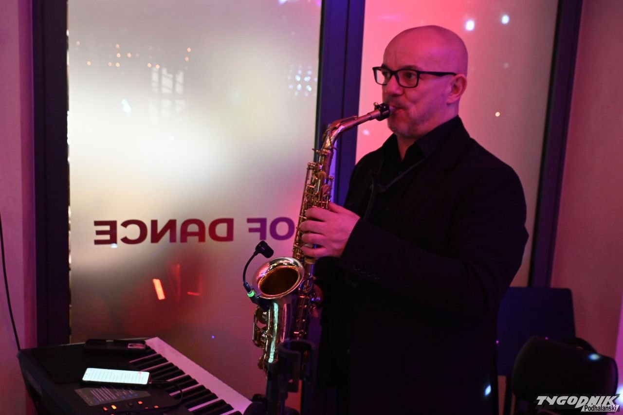 Było słychać nie tylko dźwięki kieliszków, ale i świetny - jak zawsze - saksofon, na którym grał znany w mieście muzyk - Wojciech Inglot. Zaś obowiązki prowadzącego wziął na siebie Mateusz Dewera, aktor pochodzący ze stolicy Podhala.