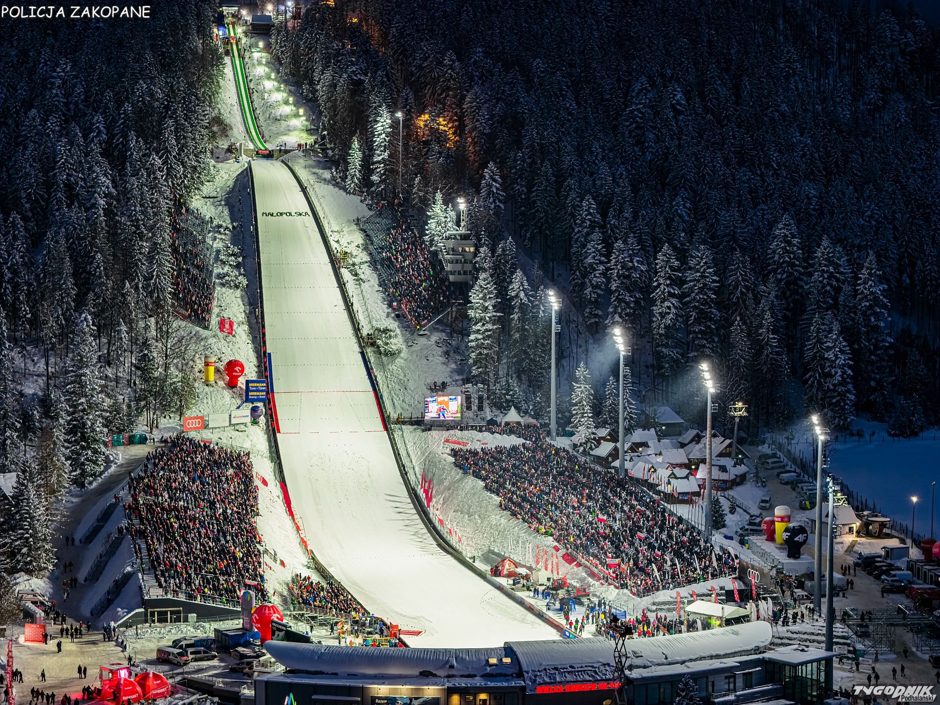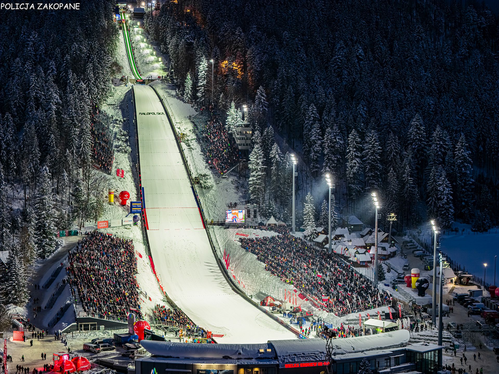 Policjanci podsumowali pierwszy dzień Pucharu Świata. Według oceny policjantów na Wielkiej Krokwi pojawiło się ponad 9000 kibiców. Tego wieczoru były przypadki zagubienia się kibiców, jednemu z nich groziło zamarznięcie.
