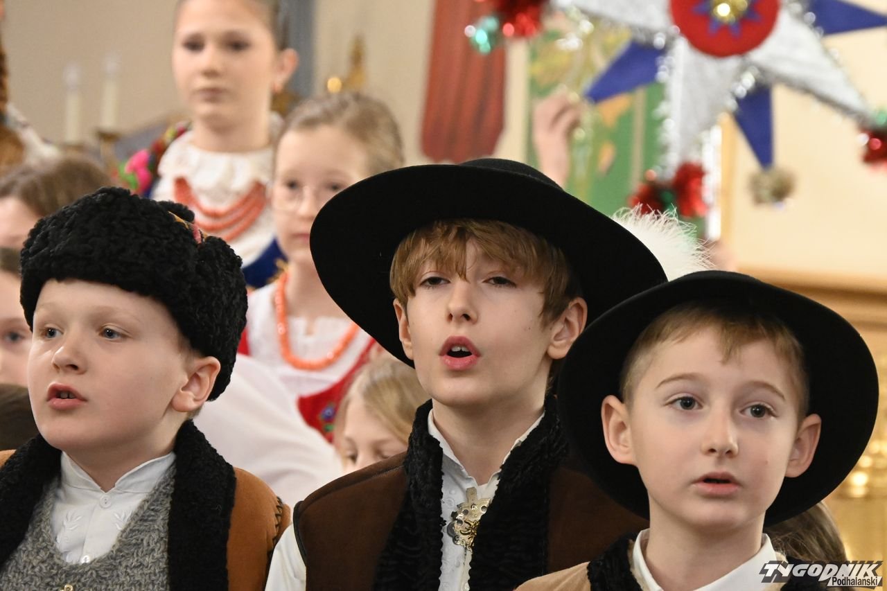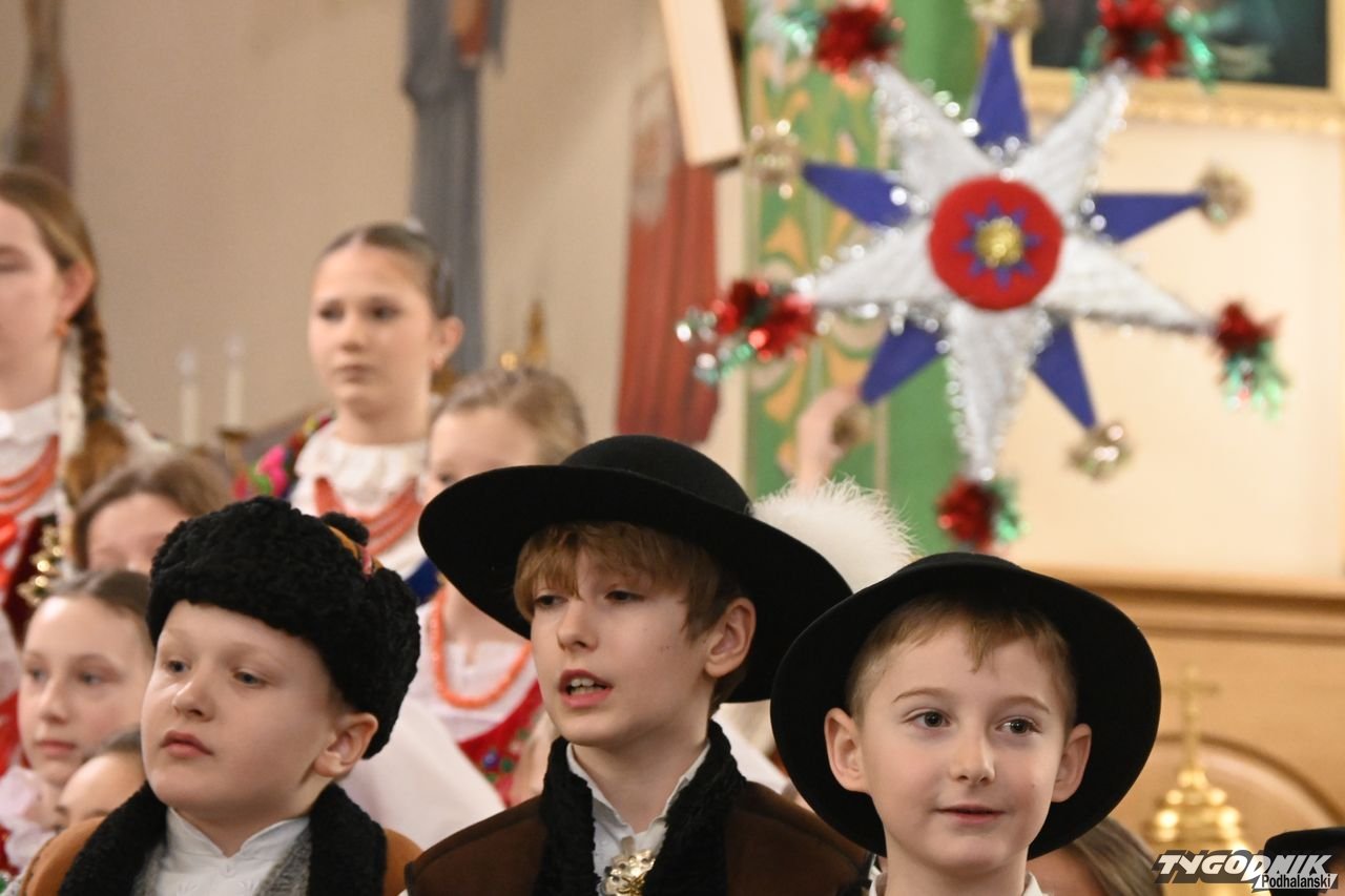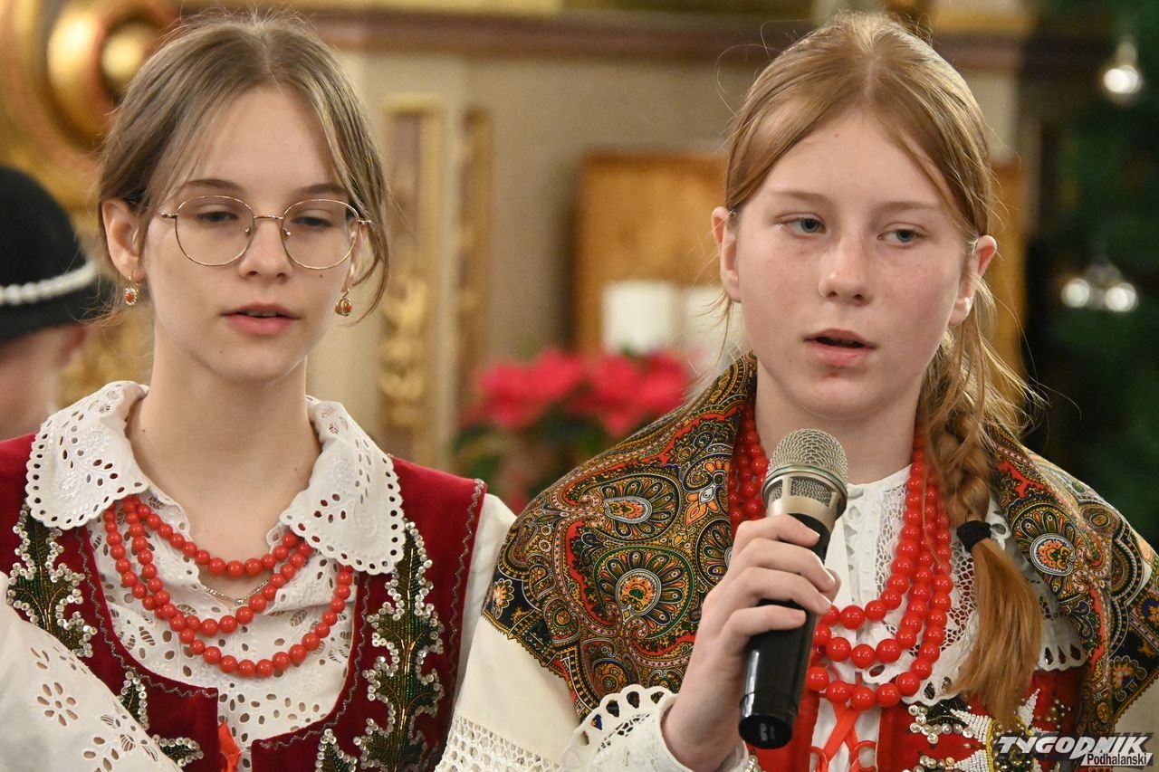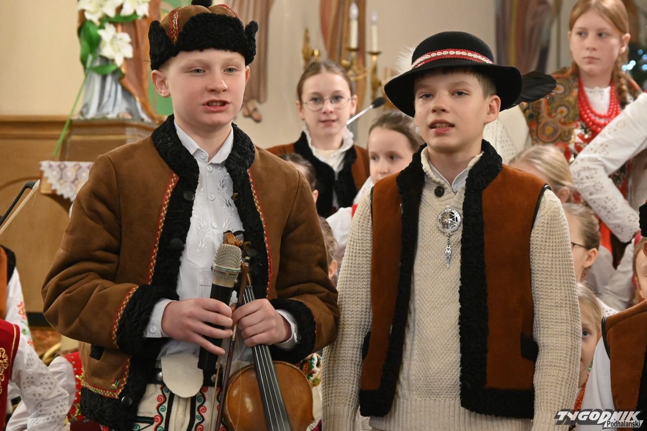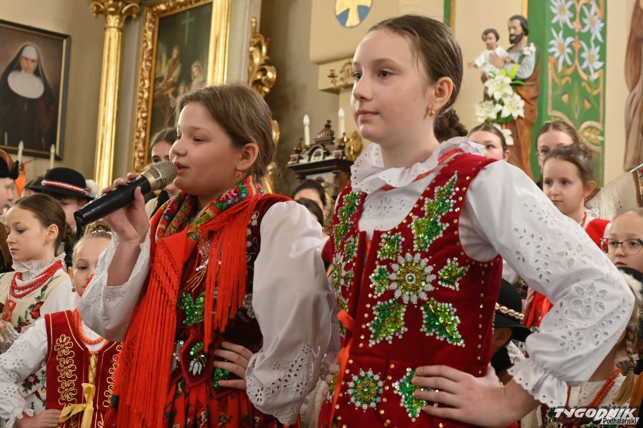 Przed wspólnym kolędowaniem członkowie zespołu uczestniczyli w Mszy św. w kościele parafialnym, odczytali też liturgię słowa w gwarze podhalańskiej i wezwania modlitwy wiernych. Nie zabrakło także dźwięków kapeli regionalnej. - Bardzo wam dziękuję za podtrzymywanie tej niezwykle pięknej tradycji. Mamy piękną zimę, ale i gorące serca, bo wszyscy razem kolędujemy w świątyni - dodał ks. proboszcz Janusz Rzepa.