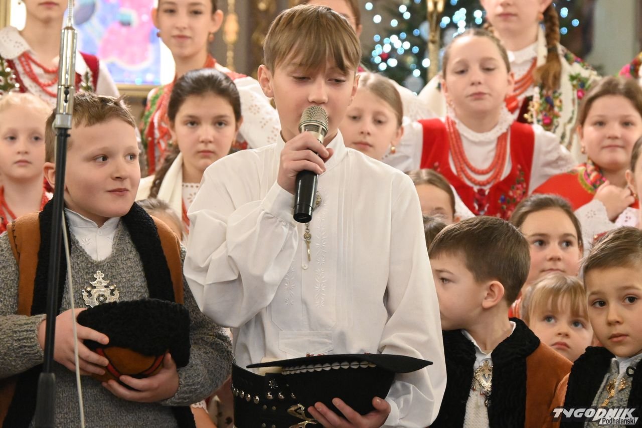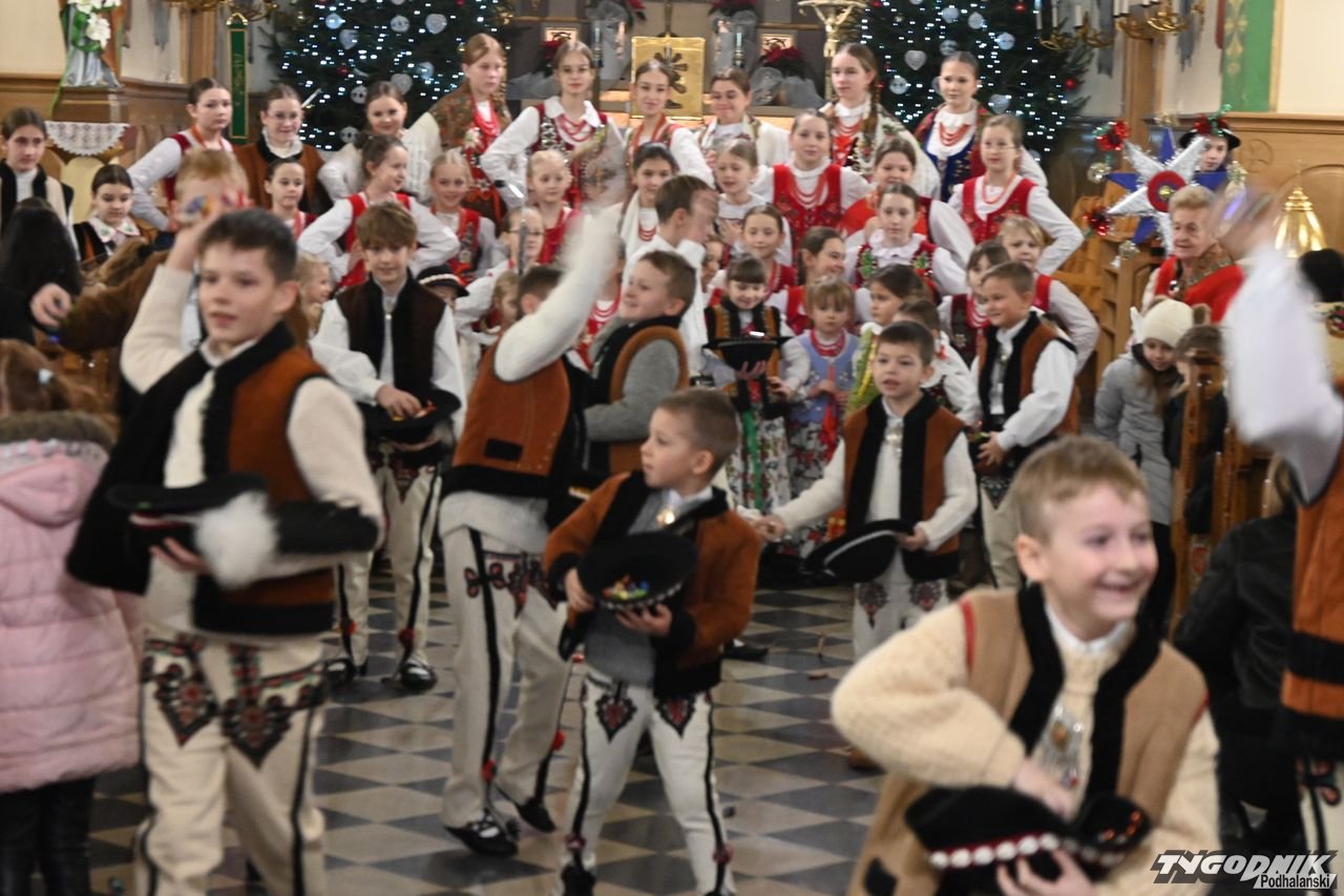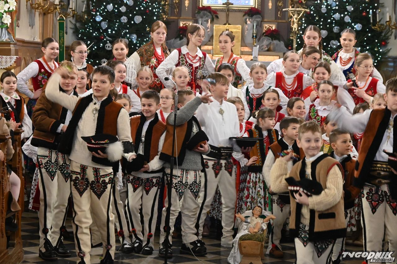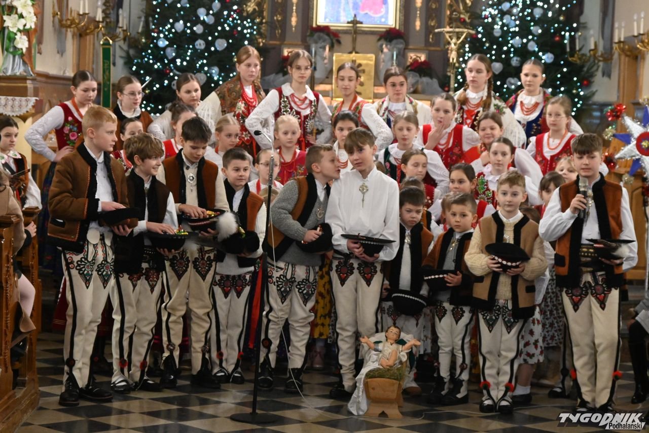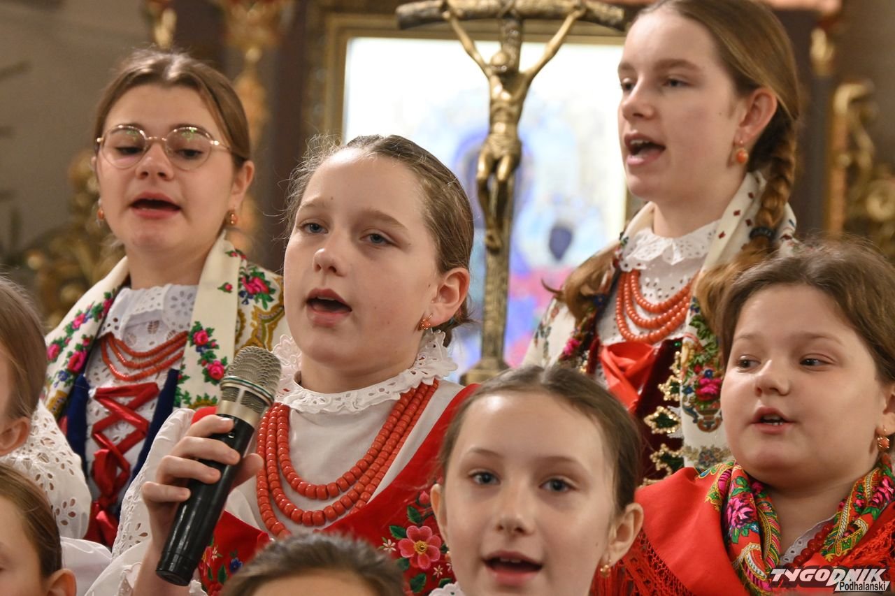 Przed wspólnym kolędowaniem członkowie zespołu uczestniczyli w Mszy św. w kościele parafialnym, odczytali też liturgię słowa w gwarze podhalańskiej i wezwania modlitwy wiernych. Nie zabrakło także dźwięków kapeli regionalnej. - Bardzo wam dziękuję za podtrzymywanie tej niezwykle pięknej tradycji. Mamy piękną zimę, ale i gorące serca, bo wszyscy razem kolędujemy w świątyni - dodał ks. proboszcz Janusz Rzepa.
