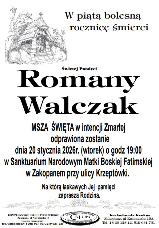 2026-01-12 12:00 Wiemy, kiedy ruszy wyciąg w Kotle Gąsienicowym 2026-01-12 11:30 Pół metra śniegu w Zakopanem (WIDEO) 2026-01-12 11:07 Góry Włoch - kompletny przewodnik dla miłośników Tatr 2026-01-12 11:00 Kolędowanie z Małymi Miętusianami. Nikykze Nowy Rocek (ZDJĘCIA, WIDEO) 2026-01-12 10:30 Kolędy i pastorałki w nowotarskim MCK 2026-01-12 10:00 Szarpał pielęgniarkę, wykręcił jej rękę 3 2026-01-12 09:49 Odśnieżone 3 2026-01-12 09:00 Tablice ostrzegawcze na tatrzańskich szlakach 2026-01-12 08:00 Bacowski opłatek 2026-01-11 21:19 Niezapomniany konkurs na Wielkiej Krokwi. Pożegnanie Kamila Stocha (ZDJĘCIA) 7 2026-01-11 21:00 Zbójnicek z przedstawieniem. Stajenka w Tatrach. (ZDJĘCIA) 2026-01-11 19:59 Cały czas pada śnieg. Trwa akcja odśnieżania ulic 6 2026-01-11 19:15 Kamil Stoch żegna się z kibicami. Wzruszające chwile na Wielkiej Krokwi (WIDEO) 3 2026-01-11 17:53 Na Wielkiej Krokwi wygrywa Anze Lanisek. Polacy poza pierwszą dziesiątką 2 2026-01-11 17:10 Ostatni skok Kamila Stocha na Wielkiej Krokwi (WIDEO) 7 2026-01-11 17:09 Prezydent Karol Nawrocki kibicuje polskim skoczkom (WIDEO) 20 2026-01-11 16:00 Kolędy z Bończyk, Wójcickim i Mijalem (ZDJĘCIA, WIDEO) 1 2026-01-11 15:34 Domen Prevc najlepszy w serii próbnej. Tomasiak czwarty, Kubacki piąty 2026-01-11 15:00 "Żywa okładka". Poznaj laureatów konkursu 2026-01-11 14:30 Piękna zima na Drodze pod Reglami. Wieje wiatr, który może utrudnić skoki (WIDEO) 4 2026-01-11 14:00 Deportują naszych z Ameryki 20 2026-01-11 13:45 Nocne akcje ratunkowe TOPR w Tatrach 2026-01-11 13:23 Takie warunki panują na zakopiance (WIDEO) 3 2026-01-11 13:00 XII Puchar Zakopanego Amatorów w Narciarstwie Alpejskim zainaugurowany na Harendzie! 2026-01-11 12:34 Zagubieni kibice. Jednemu groziło zamarznięcie. Było bezpiecznie, ale policjanci mieli sporo pracy 3 2026-01-11 12:31 Ratownicy podhalańscy GOPR żegnają swojego kolegę 2026-01-11 12:29 Od godz. 16 wielkie skakanie na Wielkiej Krokwi. Pożegnanie Kamila Stocha 1 2026-01-11 12:00 Rewolucja w najmie krótkoterminowym nadciąga, trwają konsultacje społeczne 5 2026-01-11 11:19 Dobre rady zawsze w cenie. Mamy dla Was książki 2026-01-11 11:00 Zima trzyma. Od rana w Zakopanem sypie śnieg (WIDEO) 2 2026-01-11 11:00 Zderzenie dwóch aut w Leśnicy 2026-01-11 10:00 Poszukujemy domu dla młodej rudej kotki 5 2026-01-11 09:59 Prezydent Andrzej Duda otworzył 12H Slalom Maraton (WIDEO, ZDJĘCIA) 1 2026-01-11 09:00 Mała cząstka wielkiej historii 2026-01-11 07:59 Siatkarskie zmagania (ZDJĘCIA) 2026-01-10 21:55 Wielkie święto na Wielkiej Krokwi (ZDJĘCIA) 2 2026-01-10 21:29 Świetny początek Paranarciarskich Mistrzostw Polski 2026. Zawodnicy HANDICAP Zakopane z dziewięcioma medalami 2026-01-10 20:39 Bardzo zła jakość powietrza w dolnej części Zakopanego 21 2026-01-10 20:10 Potężna lawina w Gruzji. Wiele osób pod śniegiem 2 2026-01-10 20:00 Przed wypadkiem uwielbiał góry 2026-01-10 19:10 Krupówki po Pucharze Świata wypełnione kibicami (WIDEO) 1 2026-01-10 19:00 Rusza remont dawnej szkoły muzycznej w Parku Miejskim. Powstanie filia Muzeum Tatrzańskiego 1 2026-01-10 18:00 Chcesz wiedzieć jak poprawić widoczność firmy w sieci, przyjdź na spotkanie 2026-01-10 17:46 Polacy na trzecim miejscu w Zakopanem! 1 2026-01-10 17:00 Nowa hala maszyn u artystów, głównie do obróbki drewna 2026-01-10 15:59 Klasycznym czy jodełką na Turbacz 2 2026-01-10 14:58 Słabe skoki Polaków. Fettner najlepszy w kwalifikacjach. Tomasiak i Kubacki w konkursie duetów 2026-01-10 14:20 Kibice zmierzają na Wielką Krokiew (WIDEO) 1 2026-01-10 13:59 Ostrzeżeni przed opadami śniegu. W Tatrach nawet 40 cm 2026-01-10 12:59 Pierwszy trening bez Polaków. Drugi wygrywa Prevc, Kubacki najlepszy z Polaków