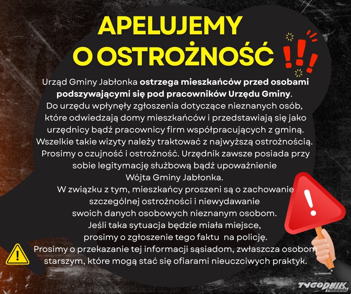Gmina Jabłonka przestrzega mieszkańców przed oszustami