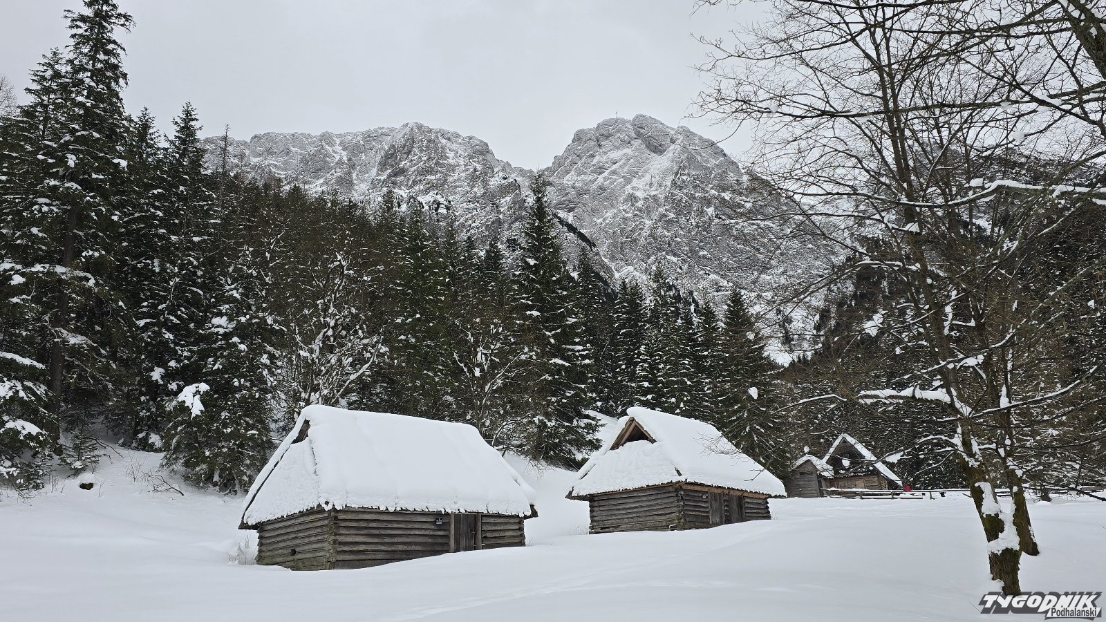 Turystów w Dolinie Strążyskiej dziś niewielu. Na termometrach temperatura powyżej zera, ale śniegu nie brakuje. Słońca na niebie dziś nie zobaczyliśmy, ale Giewont z Polany Strążyskiej niezwykle wyraźny. Wodospad Siklawica znajdujący się na końcu doliny zamarznięty. Do soboty niewiele słonecznych chwil, tylko o poranku w czwartek będą przejaśnienia. Temperatura maksymalna do 3 st. C. Od niedzieli poprawa pogody, dużo słońca i zimniej, nocą do -10 st. C.