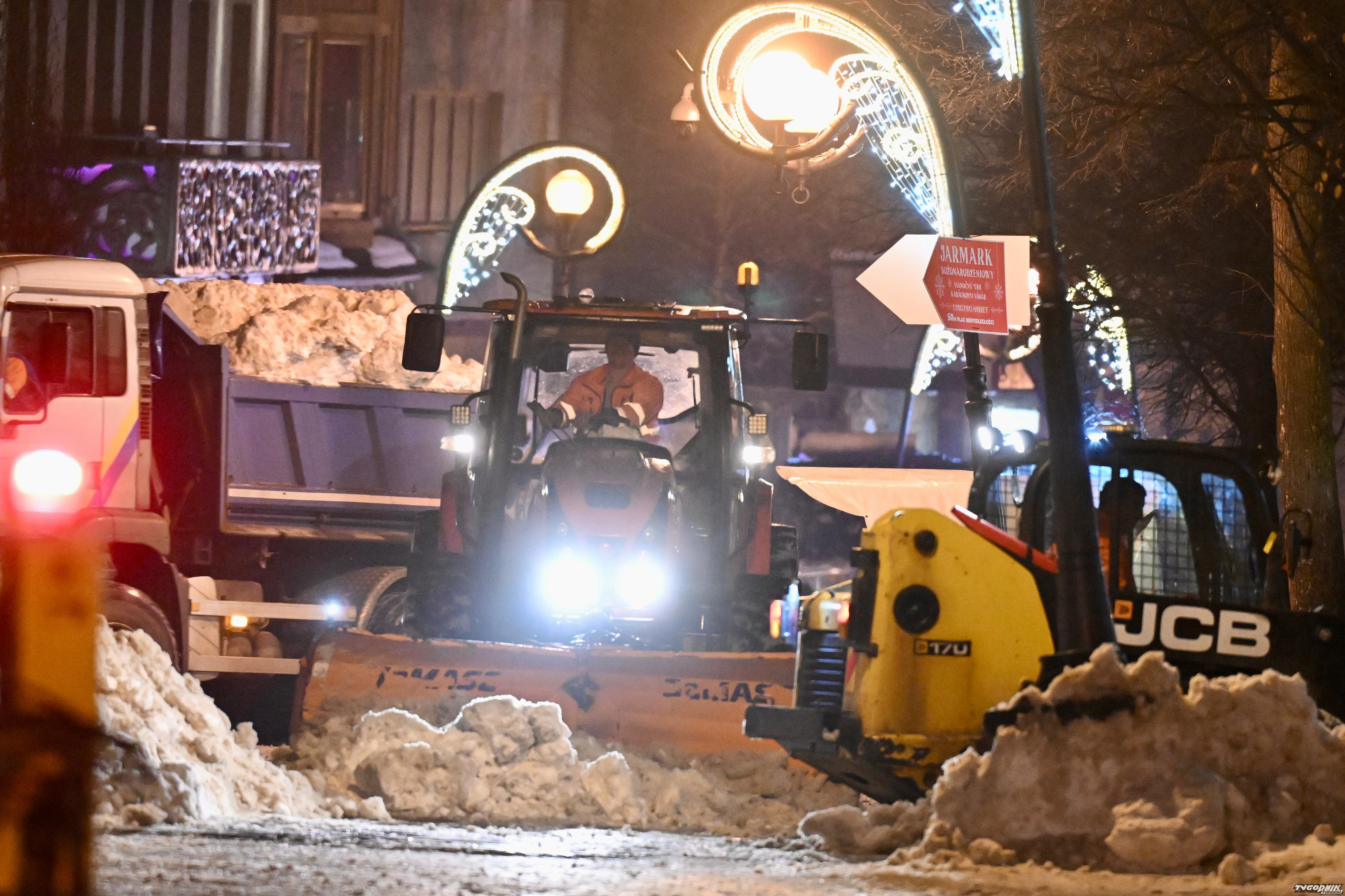 Punktualnie o godz. 22.15 rozpoczęła się wczoraj nocna akcja wywozu śniegu z Krupówek. Do pracy ruszył zarówno sprzęt, jak i ludzie. Było to prawdziwe widowisko firmy Tesko - z jaką precyzją, równocześnie, większe i mniejsze koparki, spychacze oraz ciężarówki usuwały zwały śniegu. Każdy dokładnie wiedział, co ma robić. Wszystko działało jak w zegarku. A jak to się zaczęło - zobaczcie na filmie.