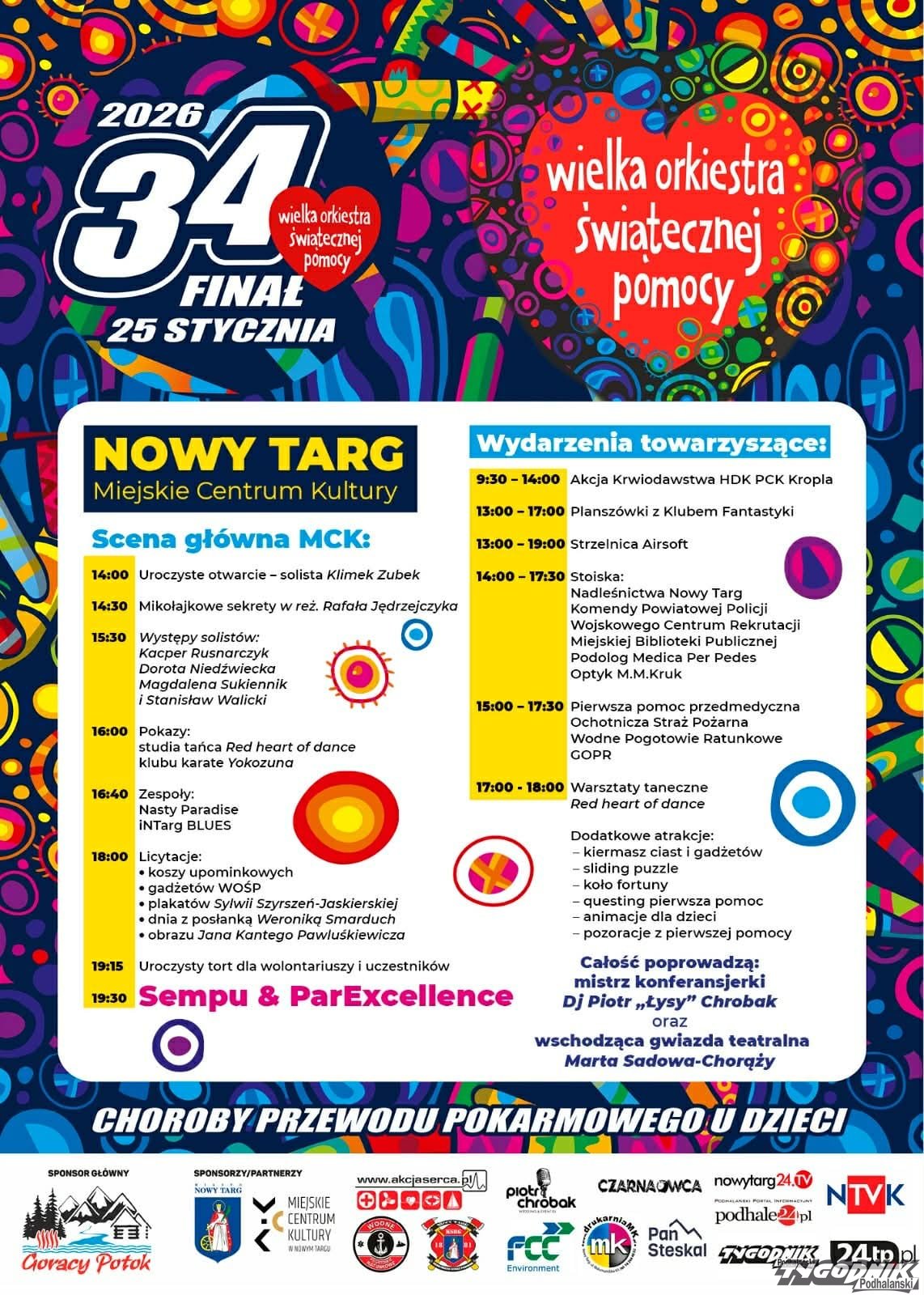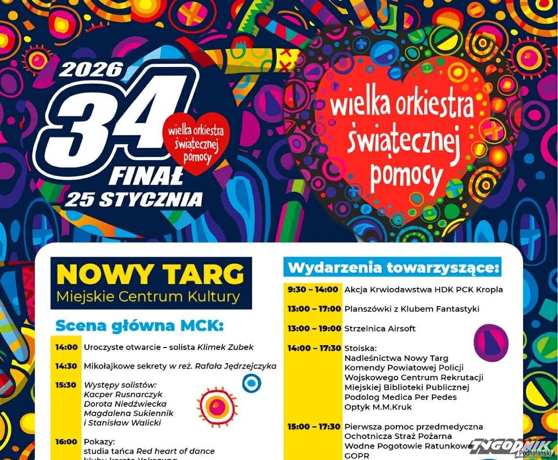 Muzyka, taniec, licytacje i mnóstwo atrakcji dla całych rodzin - tak zapowiada się 34. Finał Wielkiej Orkiestry Świątecznej Pomocy w Nowym Targu.