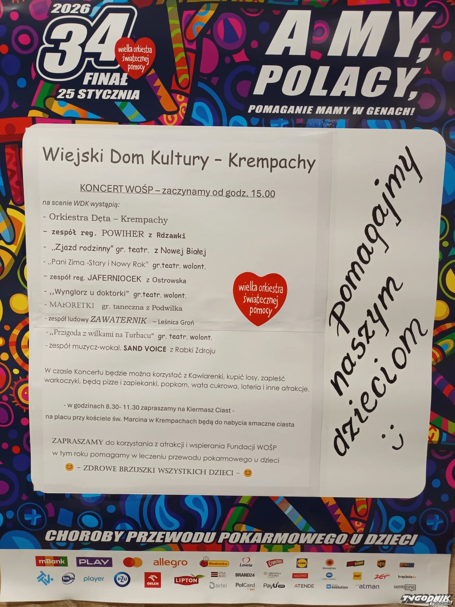 W niedzielę, 25 stycznia w Krempachach na Spiszu odbędzie się koncert w ramach Wielkiej Orkiestry Świątecznej Pomocy.