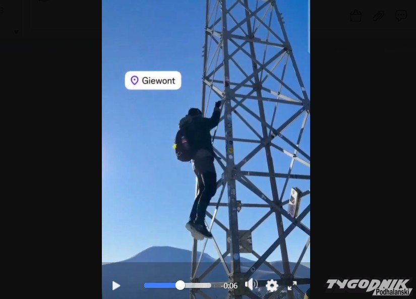W mediach społecznościowych pojawił się krótki filmik, na którym widać turystę, który podciąga się na krzyżu na Giewoncie.