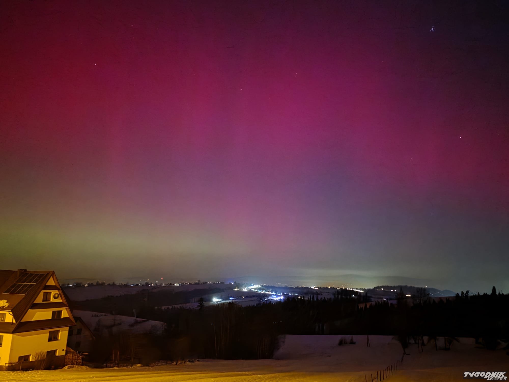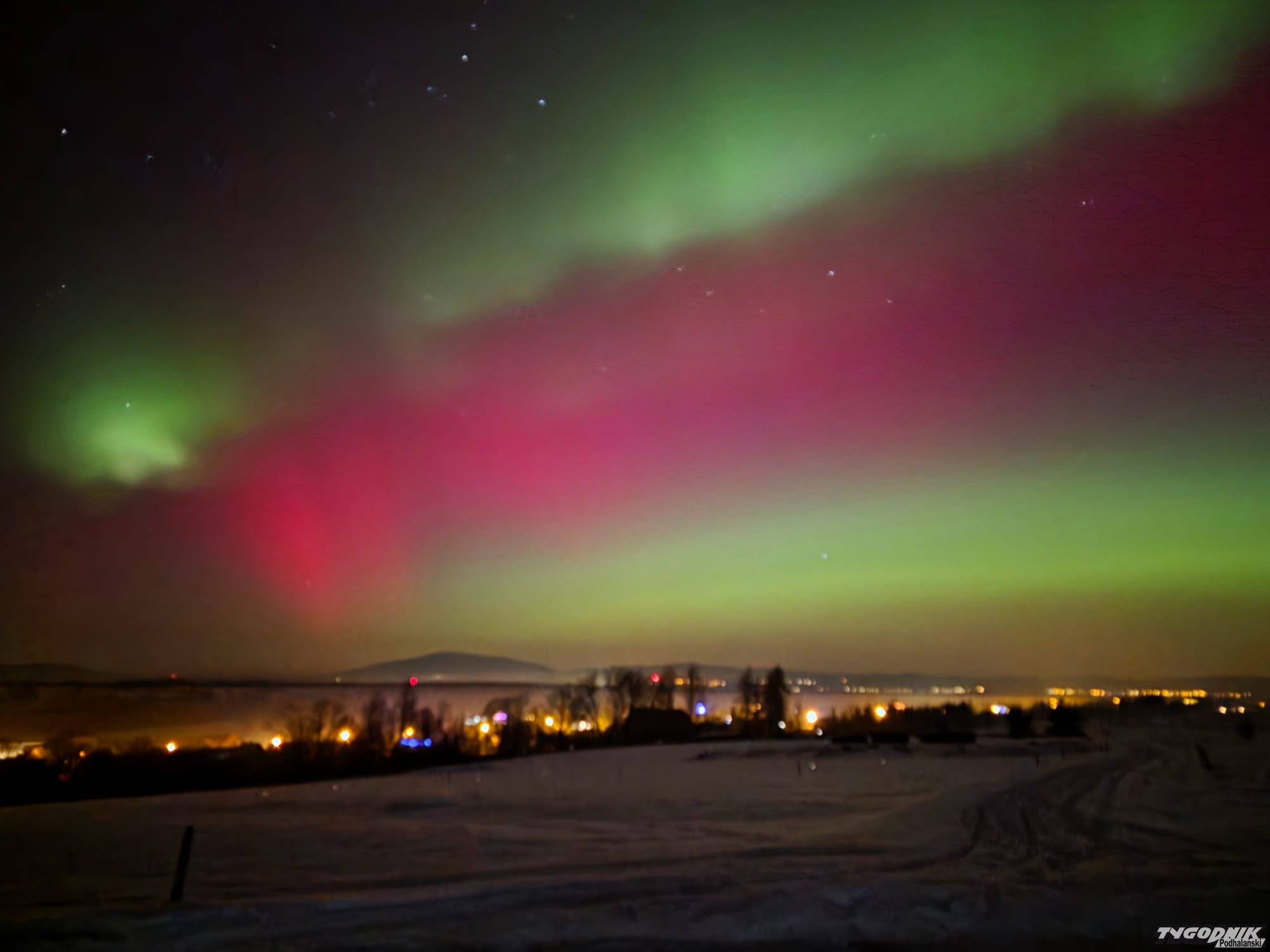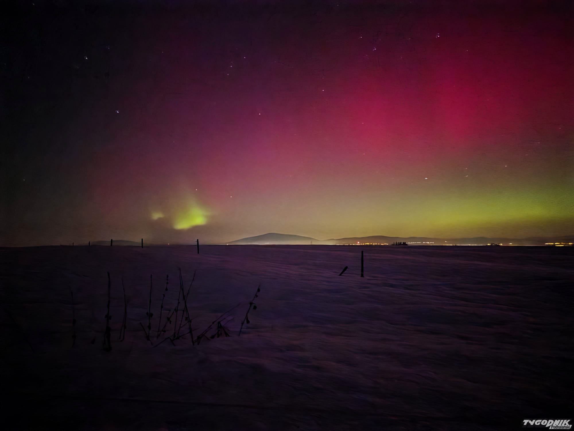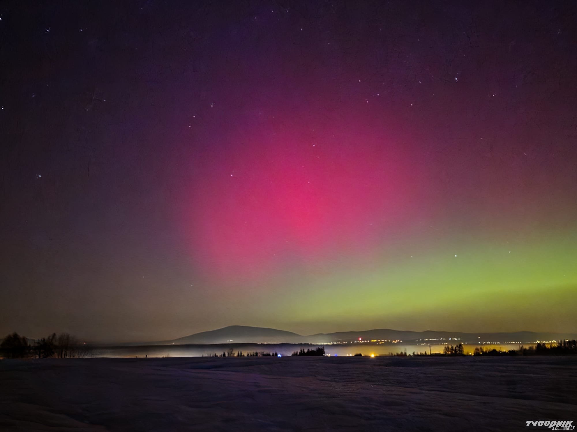 Tak wyglądała zorza polarna widziana z Gubałówki.