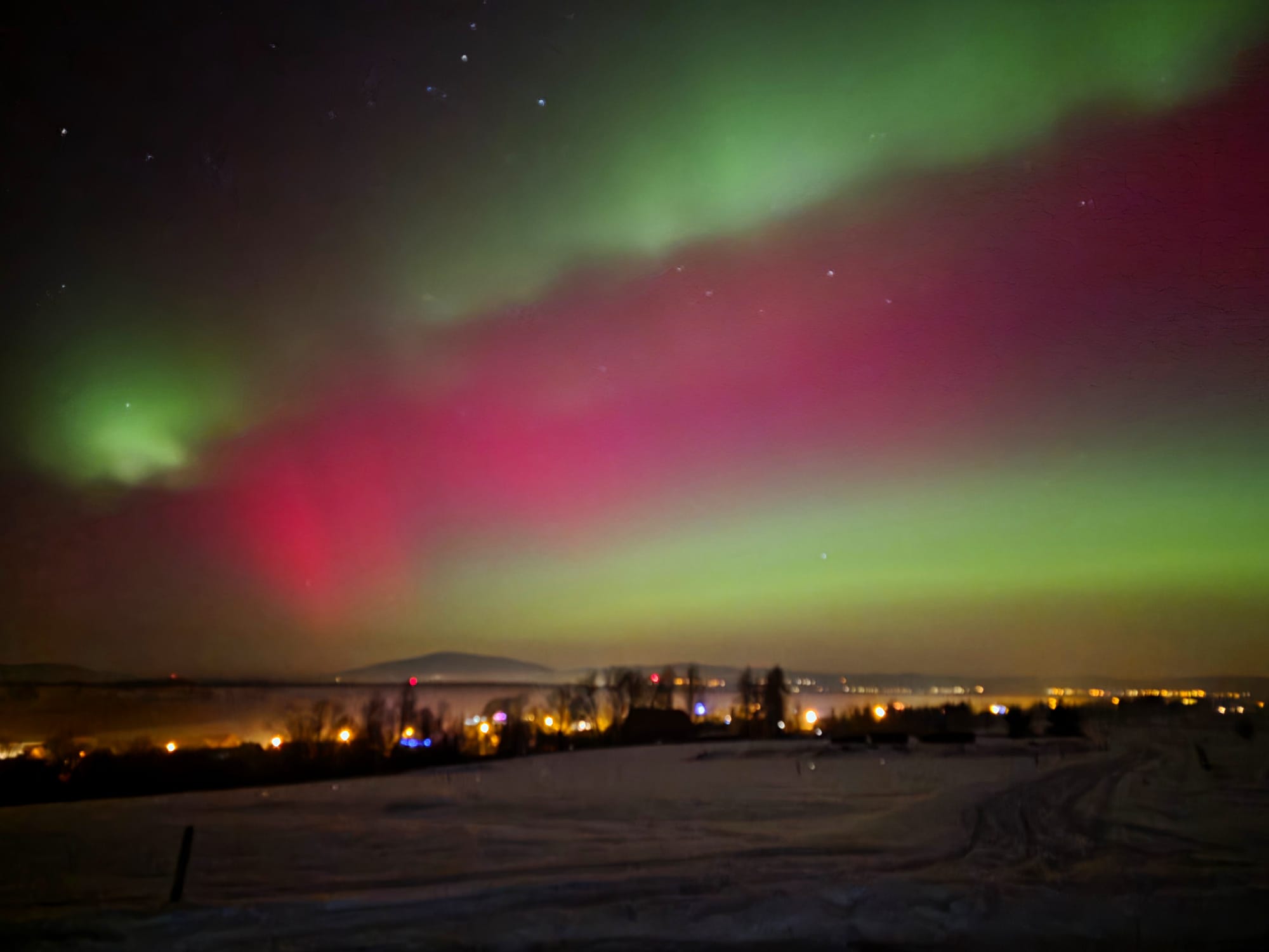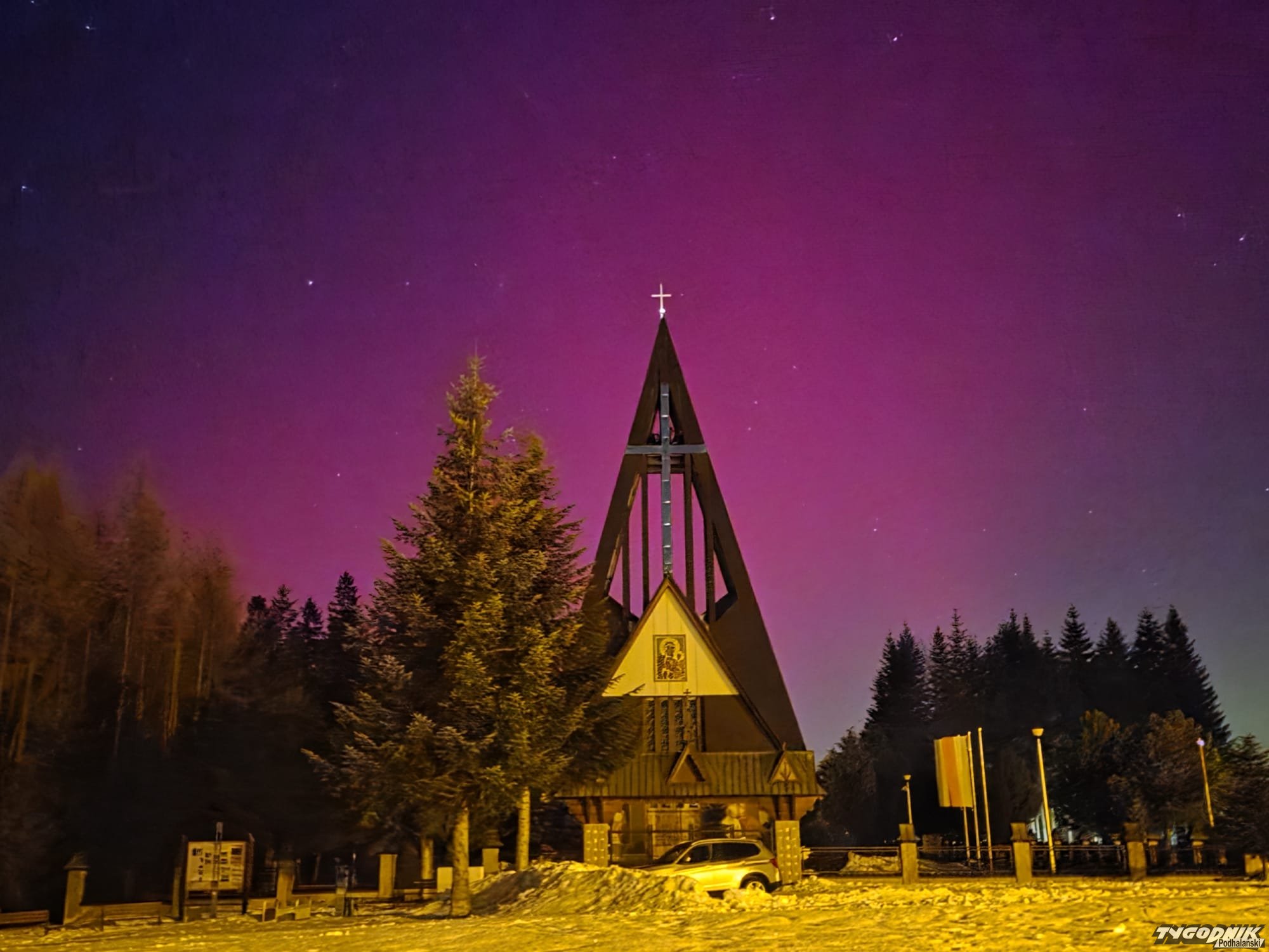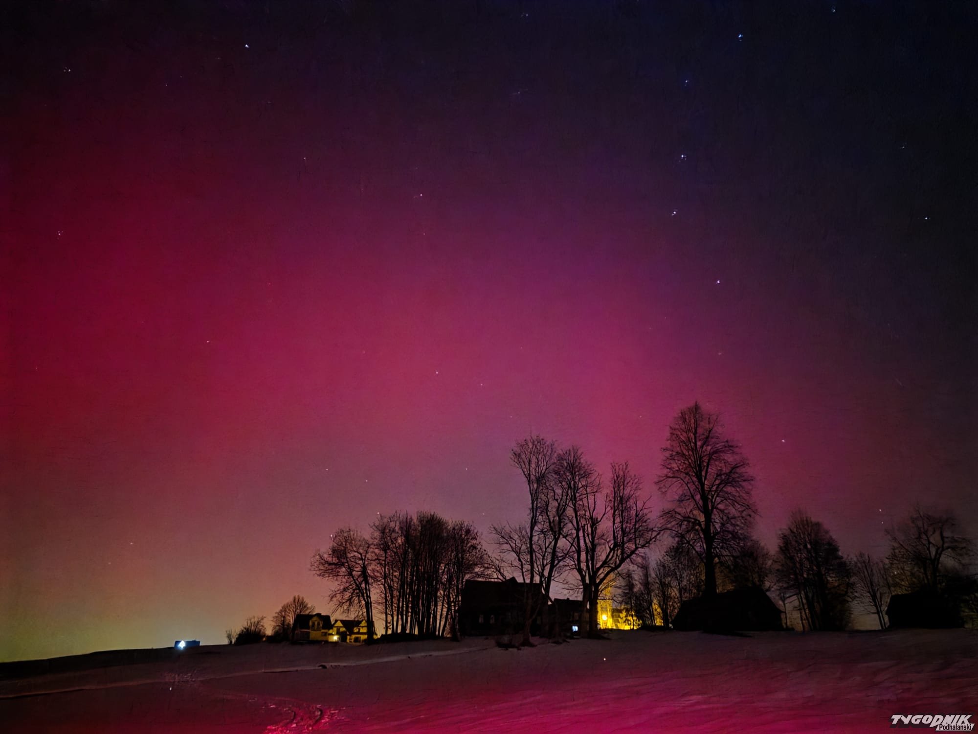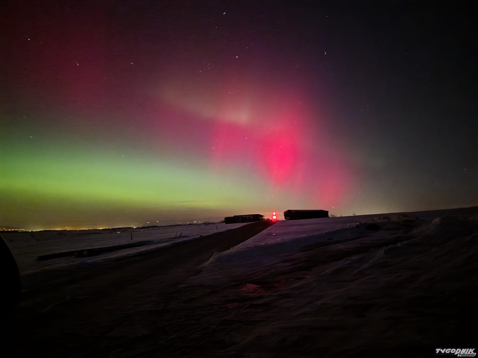 Tak wyglądała zorza polarna widziana z Gubałówki.