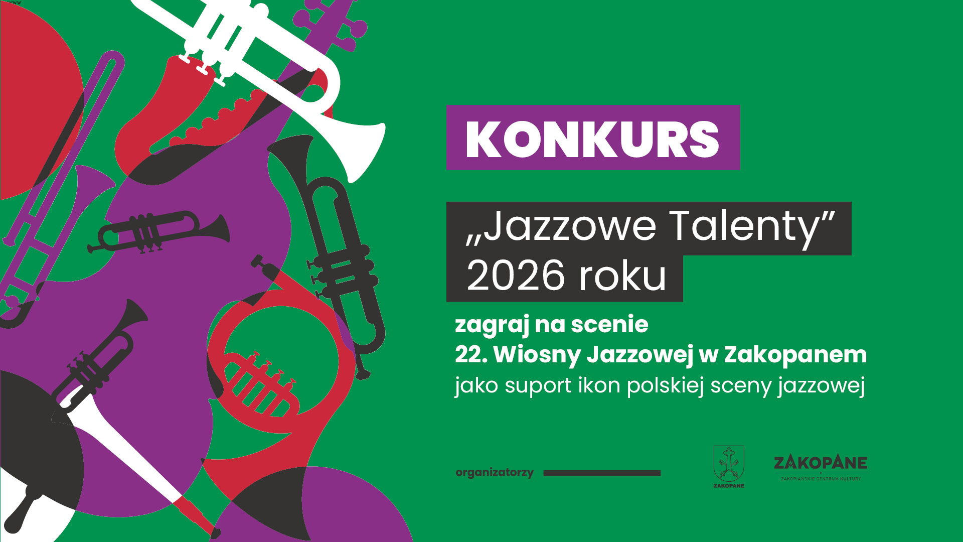 Druga edycja konkursu talentów jazzowych wystartowała ! Jeśli tworzysz autorską muzykę jazzową i marzysz o występie przed ogólnopolską publicznością - to zaproszenie jest dla Ciebie. Po niezwykle udanym debiucie konkurs wraca, by ponownie otworzyć scenę Wiosny Jazzowej Zakopane na nowe, wyraziste głosy współczesnego jazzu.