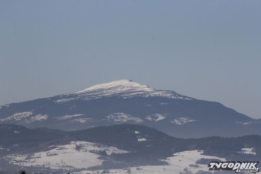Piękna słoneczna pogoda i - mimo ostrzeżeń RCB na temat smogu - całkiem dobra przejrzystość powietrza. Takie warunki panowały dziś w okolicach Rabki. Jednym z najbardziej spektakularnych i przyciągających wzrok punktów na horyzoncie była dziś bez wątpienia Babia Góra. Analogie do Kilimandżaro... nieprzypadkowe.