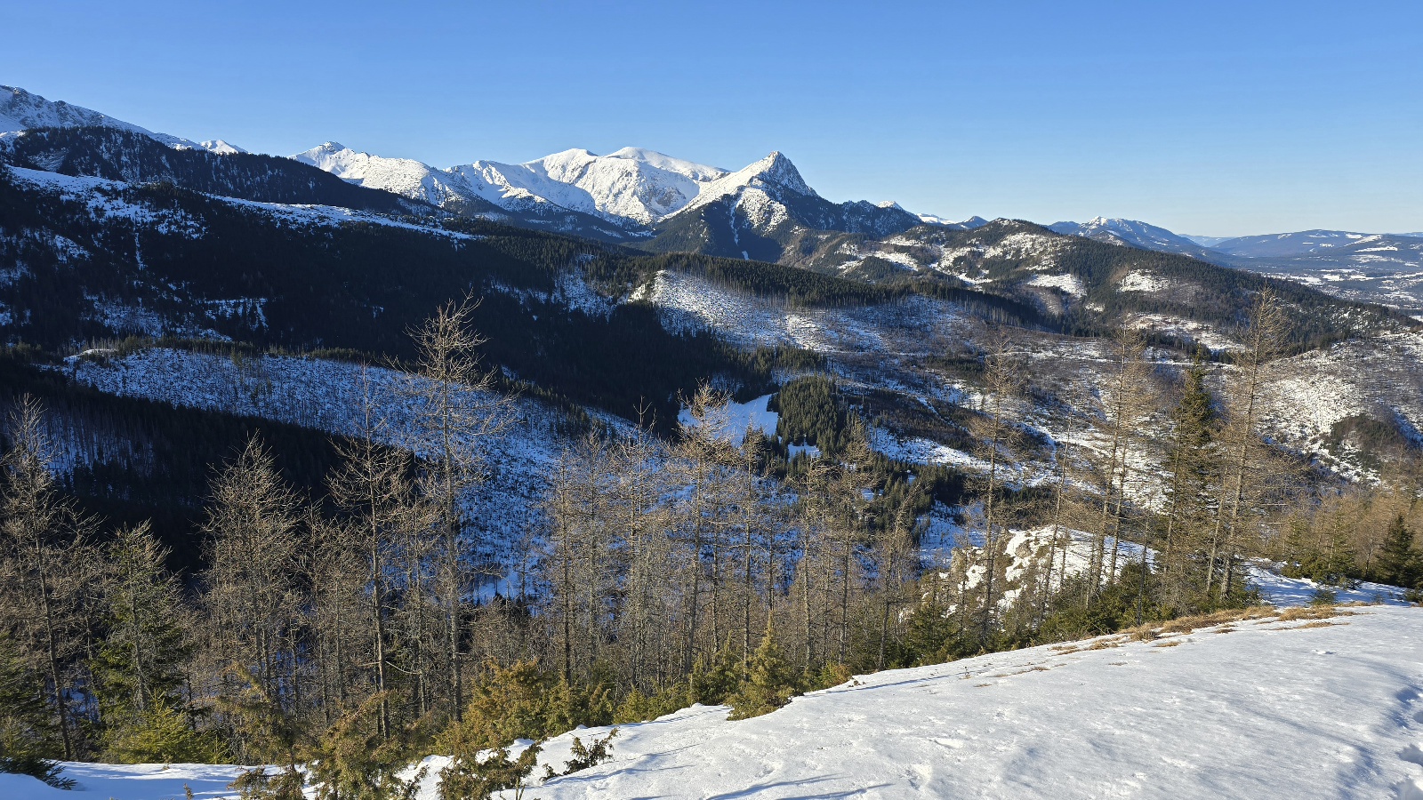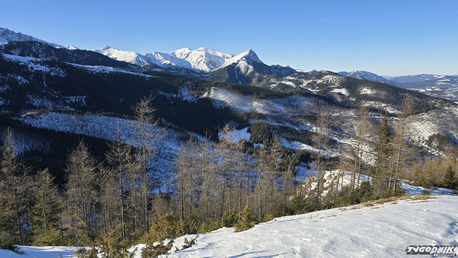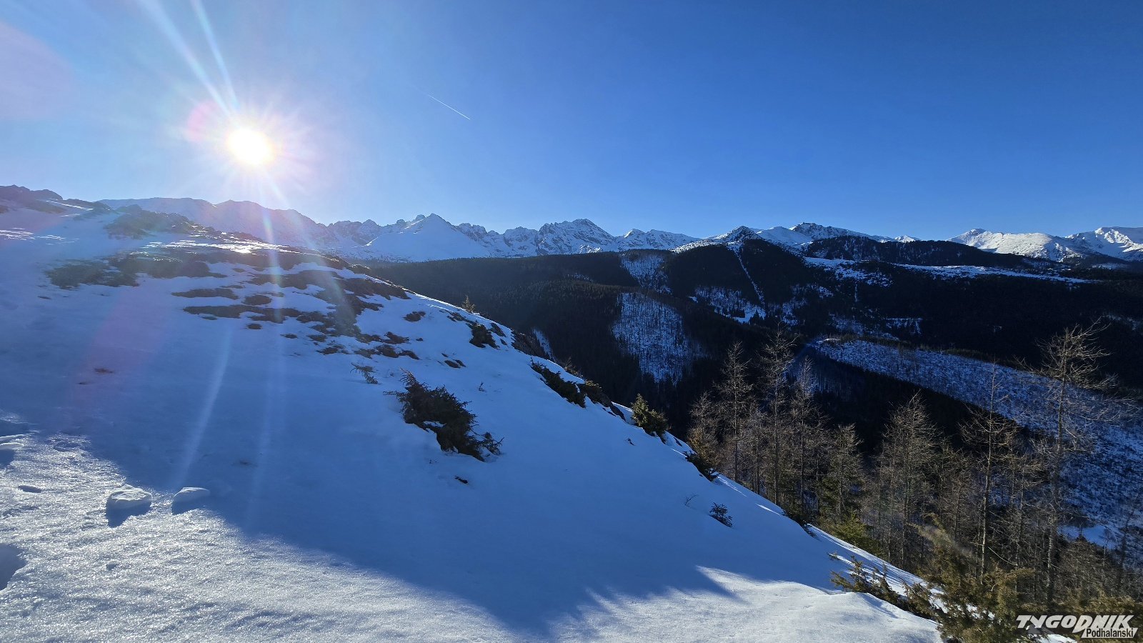 Dziś rano odwiedziliśmy Kopieniec. To szczyt w paśmie reglowym z najpiękniejszą panoramą, od Tatr Bielskich po Tatry Zachodnie. Dziś widoczność znakomita. Na szczycie o wiele cieplej niż w Zakopanem. W Tatrach zaczyna wiać ciepły wiatr. W porywach może on osiągać do 70 km na godz. W czwartek trochę więcej chmur, ale jest też szansa na słońce. Piątek słoneczny. Sobota zapowiada się pochmurnie, a w niedzielę więcej słońca. Temperatura maksymalna do 3 st. C. na plusie w Zakopanem.