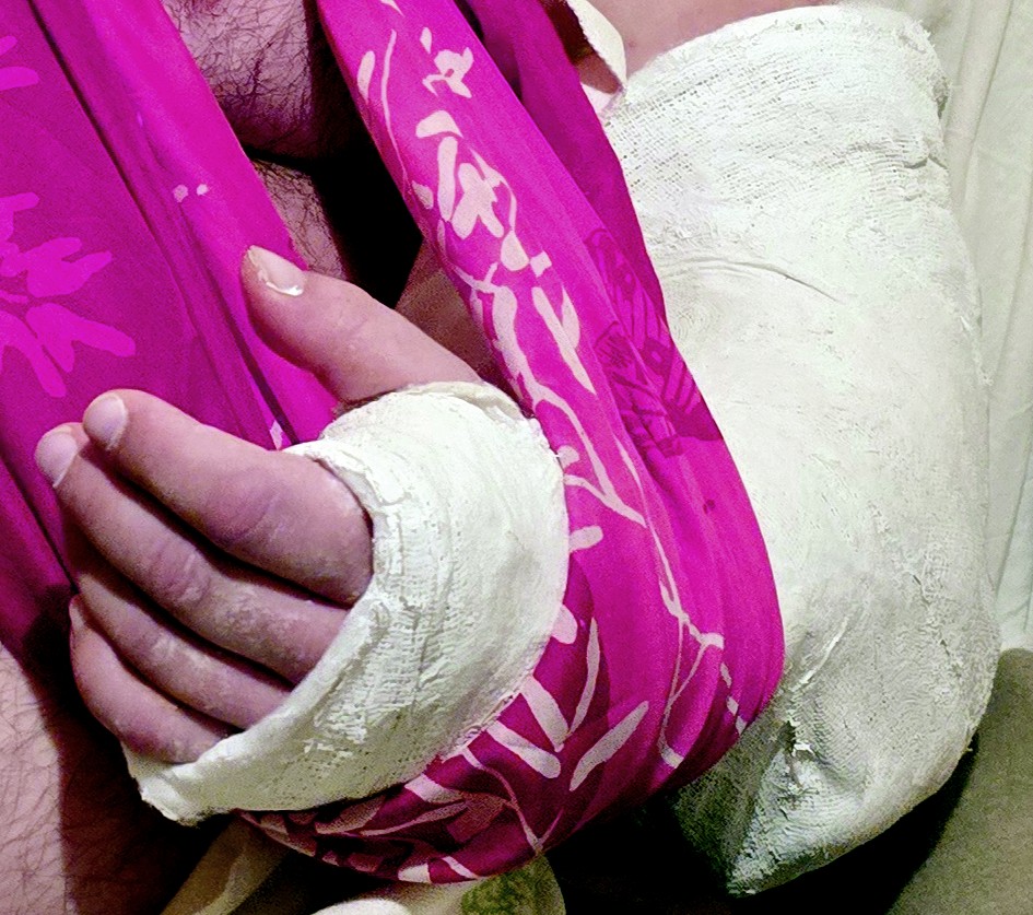 - Gdy zakładał mi kajdanki, poczułem nagły ból i coś chrząsnęło w ramieniu. W pokoju słychać było trzask łamanej kości – opowiada czterdziestokilkuletni inżynier. Do zdarzenia doszło 1 stycznia. To wtedy, jak twierdzi, rękę złamał mu opisywany już wcześniej przez nas mł. aspirant MK, policjant ze Szczawnicy. - Sama interwencja była słuszna. Nie powinniśmy byli być tak głośni w pokoju hotelowym. Ale sposób, w jaki mnie potraktował wezwany policjant, był zupełnie nieadekwatny do sytuacji. Nie wymagała ona takiego zachowania wobec mnie - podkreśla.
