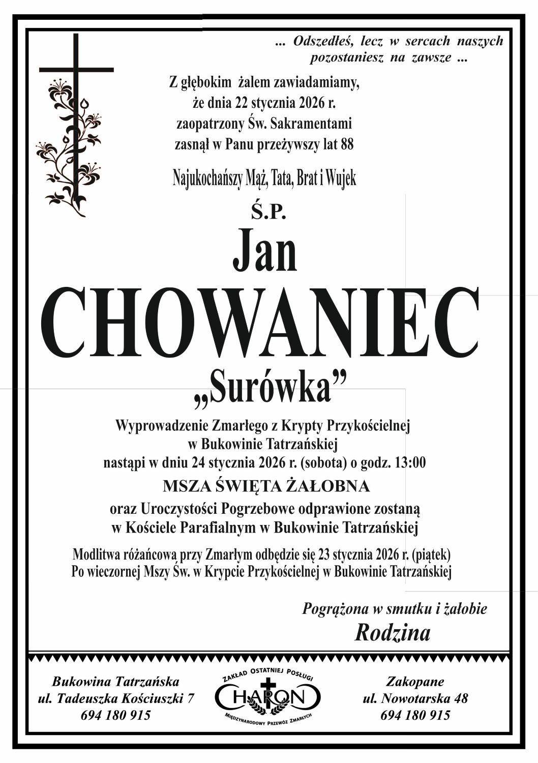 2026-01-23 13:16 Okładzina elewacyjna Reynaers Aluminium 2026-01-23 13:00 Co robić w weekend w Zakopanem? 2026-01-23 12:30 Hotel Górski PTTK na Kalatówkach gra dla WOŚP 2026-01-23 12:00 Nie ma finału procesu o 10 milionów odszkodowania dla rodziny "Ognia" 2026-01-23 11:30 Na najwyższą górę świata. Mamy dla Was bilety 2026-01-23 11:08 Zrozumienie prawa odszkodowawczego i jego wpływu w Wielkiej Brytanii 2026-01-23 11:00 Kierowca taksówki wjechał na Krupówki. Dostał wysoki mandat 3 2026-01-23 10:31 NOWE DOMY W ZABUDOWIE SZEREGOWEJ W CENIE MIESZKANIA 2026-01-23 10:00 Prywatna firma przekazała samorządowi samochód dostawczy 2026-01-23 09:36 Uwaga na gołoledź w powiecie tatrzańskim. IMGW wydało ostrzeżenie drugiego stopnia 2 2026-01-23 09:00 Konkurs piosenki świątecznej obcojęzycznej 2026-01-23 08:00 Będzie się działo. Finałowe imprezy WOŚP 4 2026-01-22 21:00 "Dziewięćsił" dla strażnika podhalańskiego dziedzictwa. Krzysztof Jędrzejowski doceniony za ratowanie Jutrzenki 2 2026-01-22 20:00 Zakopane dopłaca do czystego ciepła. Nawet 10 tysięcy złotych na likwidację "kopciucha" 7 2026-01-22 19:27 Tragiczny wypadek polskiego narciarza w Tatrach Niżnych 2 2026-01-22 19:00 Wybory i spotkanie opłatkowe ZP Stare Bystre 2 2026-01-22 18:07 Zapraszamy na wielki nowotarski Finał WOŚP w Miejskim Centrum Kultury! (WIDEO) 2026-01-22 17:33 Znamy kadrę skoczków na Igrzyska Olimpijskie. Jest niespodzianka 2 2026-01-22 17:00 Pokoleniowe kolędowanie 1 2026-01-22 16:30 Dyskotekowe ferie w nowotarskiej bibliotece 2026-01-22 16:27 Napadł na kobietę, zabrał jej różne rzeczy osobiste. Ma na sumieniu jeszcze inne przestępstwa 2026-01-22 15:40 Była kompletnie pijana. Na drodze nie panowała nad samochodem 2 2026-01-22 15:00 Nowoczesna kardiologia w Nowym Targu dzięki środkom z KPO 18 2026-01-22 14:00 Kamera termowizyjna i dron wspomogą Straż Gminną w walce z zanieczyszczeniem powietrza 2 2026-01-22 13:30 Możesz liczyć na policjantów 2026-01-22 13:00 Zakopane włącza się do 34. Finału WOŚP 1 2026-01-22 12:30 Plaga nietrzeźwych kierowców na drogach powiatu nowotarskiego 2026-01-22 12:08 Śliskie chodniki na Mrowcach 6 2026-01-22 11:50 Ukradli busa, wjechali w płot i uciekli 2 2026-01-22 10:59 Poranne zderzenie czterech aut w Zakopanem 6 2026-01-22 09:59 Mróz nie odpuszcza. Policja apeluje: jeden telefon może uratować życie 2026-01-22 09:30 Kolumna informacyjna Urzędu Miasta Zakopane 2026-01-22 09:00 Podhale z Owsiakiem. 15 sztabów na Podhalu 4 2026-01-22 08:01 Przekroczyli prędkość w terenie zabudowanym. Stracili prawo jazdy 2026-01-22 08:00 Przebudzenie molocha 5 2026-01-21 21:30 W Tatrach mniej osób ratowanych przez TOPR 2026-01-21 21:00 Pierwsza noworoczna akcja zbiórki krwi zakończyła się wyśmienicie 2026-01-21 20:00 Szkoły w Spytkowicach z nowym sprzętem komputerowym 2026-01-21 19:30 Poetyckie spotkanie w Ratuszu 2026-01-21 19:00 Koncert Laureatów XXXI Przeglądu Kolęd i Pastorałek w Ludźmierzu 2026-01-21 19:00 Coraz więcej turystów w Zakopanem (WIDEO) 4 2026-01-21 18:00 Kolędowanie z rodziną Lassaków "Heliosów" z Zakopanego 2026-01-21 16:00 Są pieniądze na budowę Podhalańskiego Centrum Nauki, Techniki i Nowych Technologii w Czarnym Dunajcu 5 2026-01-21 15:41 Wypadek na budowie w Skawie 2026-01-21 15:00 Wystartowała czwórka zawodników z Podhala, zgarnęli dwa medale 2026-01-21 14:30 Schronisko PTTK w Dolinie Pięciu Stawów gra dla WOŚP 4 2026-01-21 14:00 To nie pobór ani mobilizacja, szykujcie się do kwalifikacji wojskowej 7 2026-01-21 13:30 Babciu, dziadku opowiedz. Spotkanie międzypokoleniowe 2026-01-21 13:00 Mieszkańcy i turyści na Podhalu dostają alerty RCB. Chodzi o zanieczyszczenie powietrza 9 2026-01-21 12:31 Licytuj noclegi w schronisku PTTK na Hali Krupowej