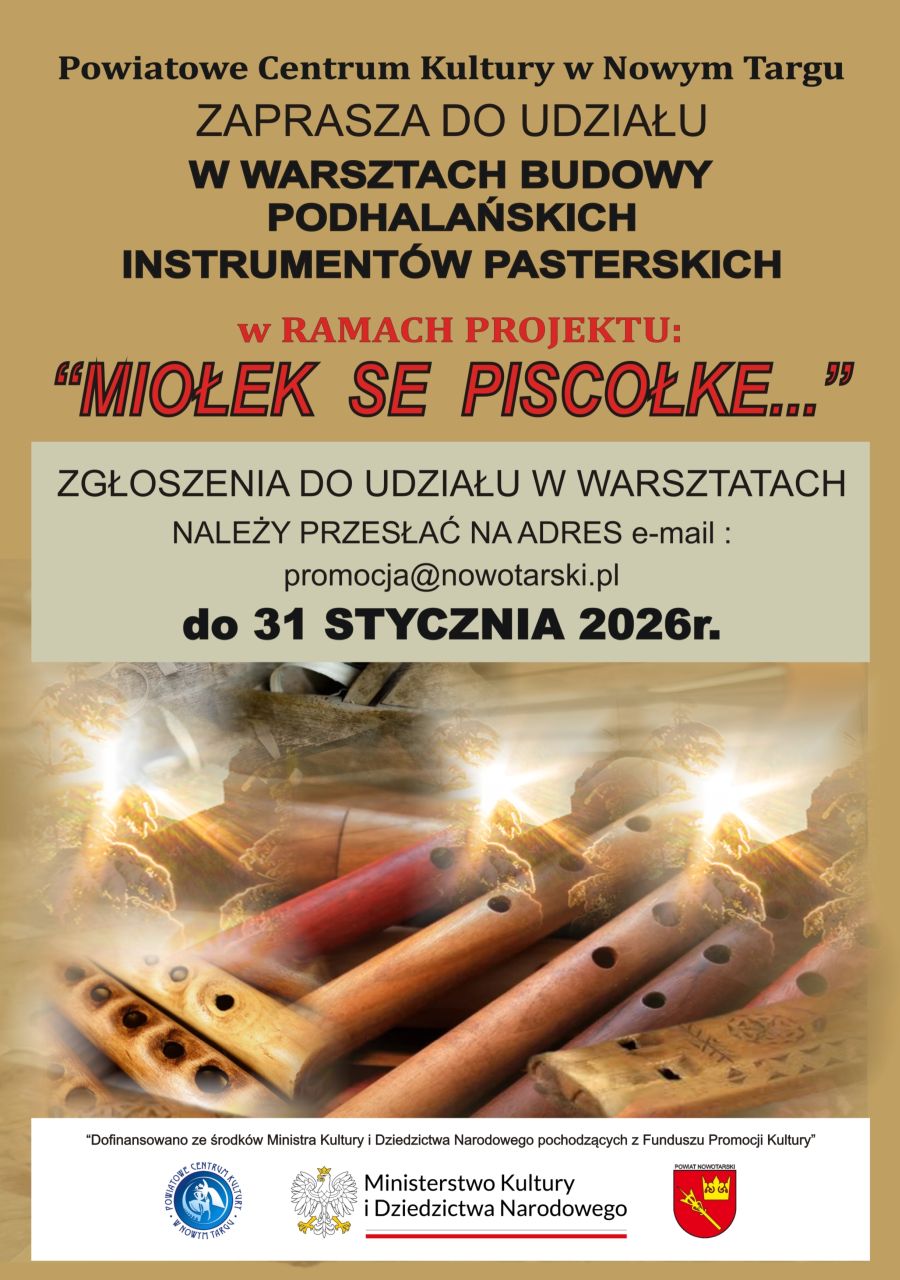 Powiatowe Centrum Kultury w Nowym Targu ogłasza nabór na warsztaty budowy podhalańskich instrumentów pasterskich.