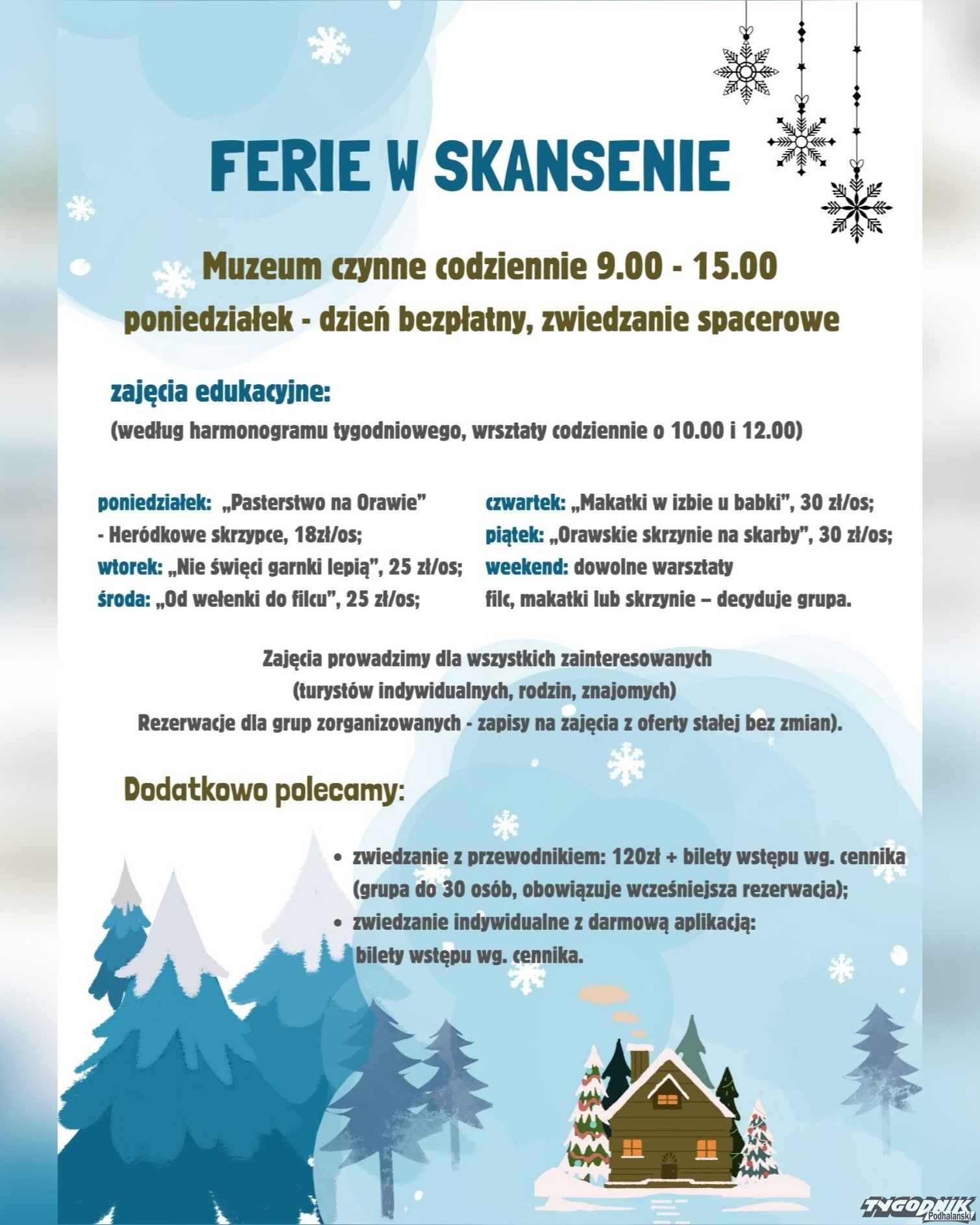 Choć trochę zimno, to idealny czas na spacery po Muzeum-Orawskim Parku Etnograficznym w Zubrzycy Górnej.