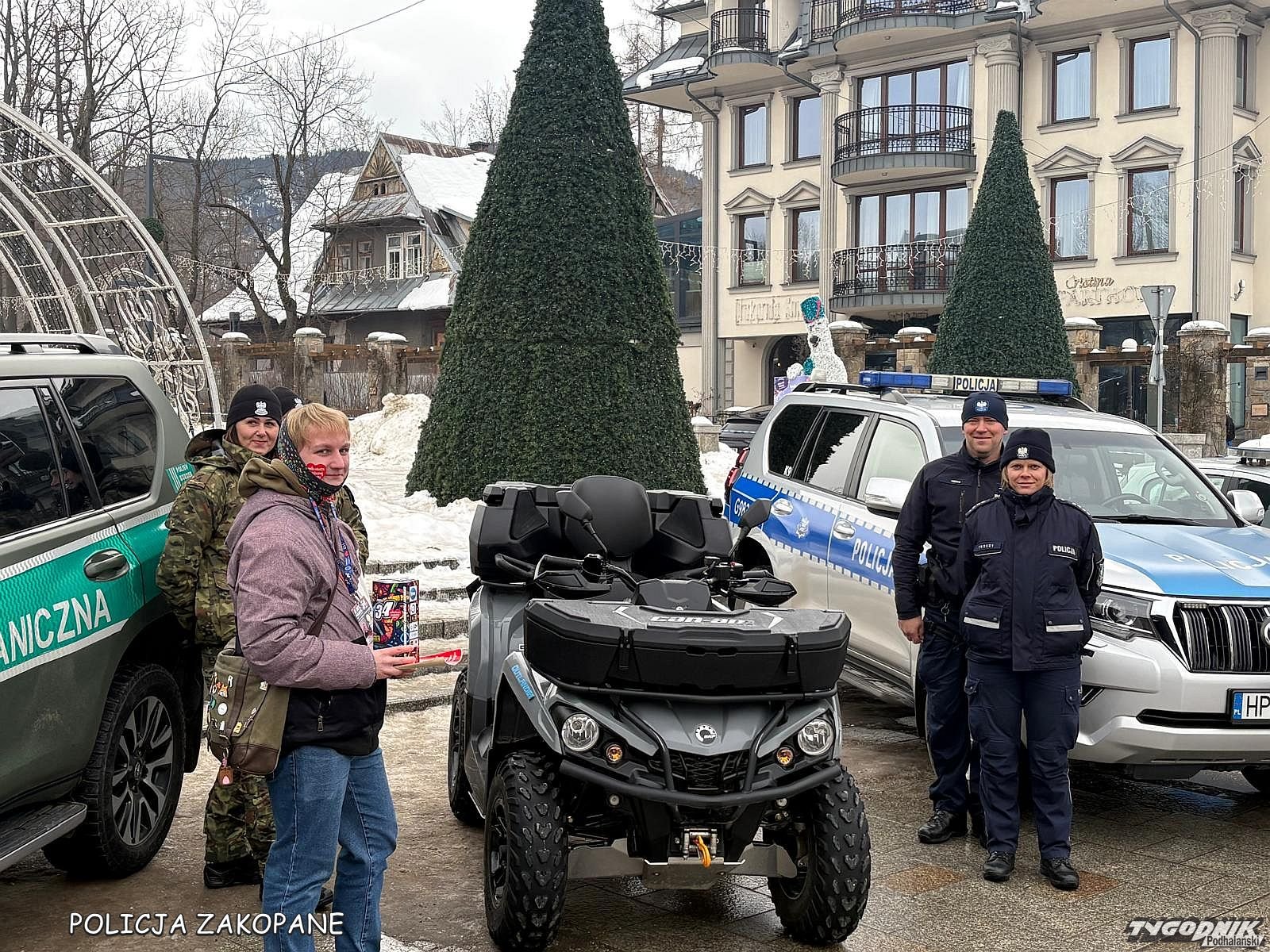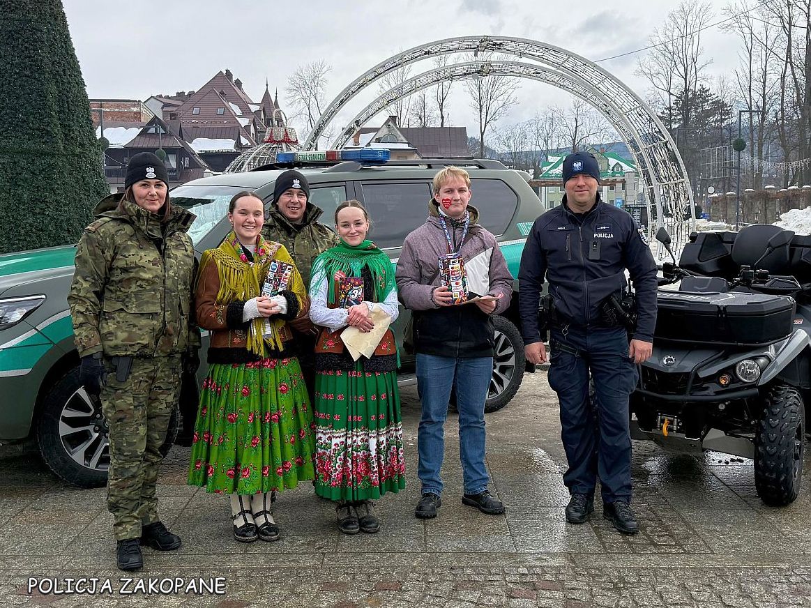 Trwa 34. Finał Wielkiej Orkiestry Świątecznej Pomocy Tatrzańscy Policjanci dbają o bezpieczeństwo wolontariuszy i wszystkich uczestników oraz grają z orkiestrą na Placu Niepodległości w Zakopanem.