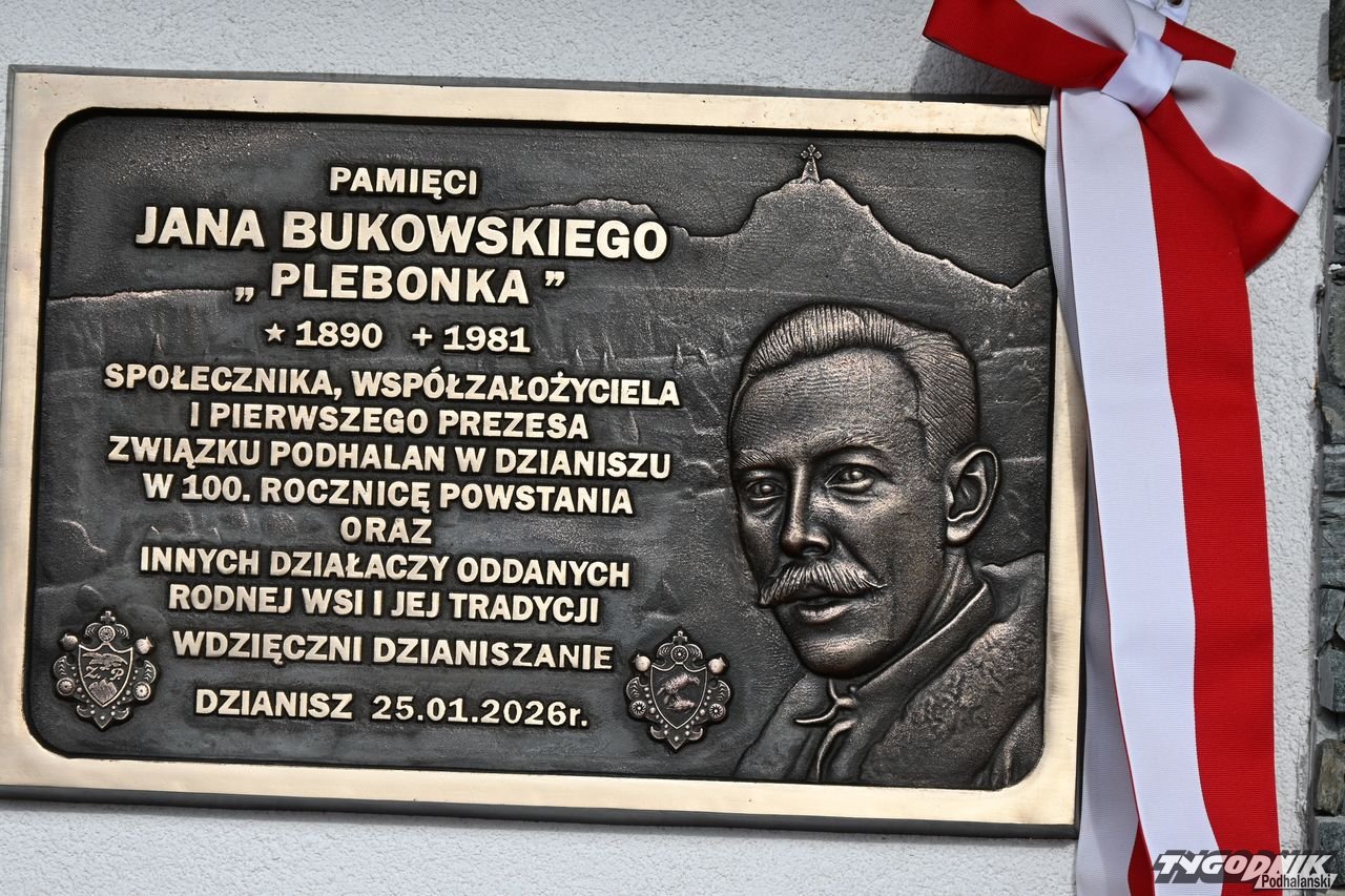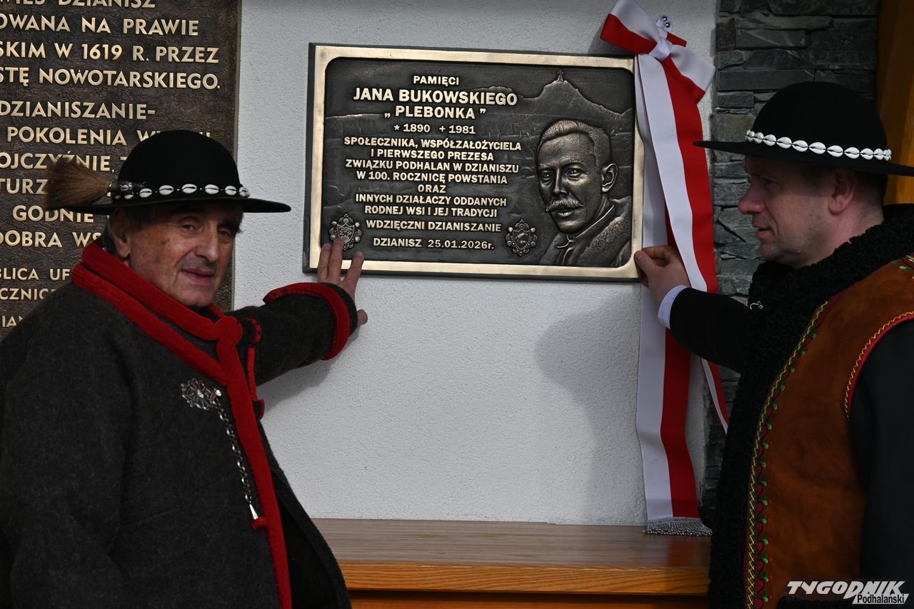 Ważnym punktem świętowania było odsłonięcie tablicy pamiątkowej Jana Bukowskiego "Plebonka" na budynku Domu Wielofunkcyjnego w Dzianiszu, tuż obok kościoła. Jan Bukowski był pierwszym prezesem Związku Podhalan. Obecnie funkcję prezes pełni Jan Bukowski, który jest spokrewniony z pierwszym prezesem.