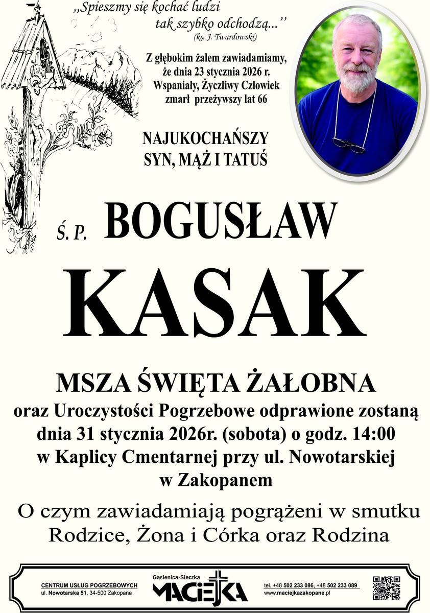 2026-01-27 17:31 1. Nie TUSZ tylko TUSK. Bo to wszystko wina Tuska! 2026-01-27 17:30 2. A co jeśli prywatna posesja mieści się na stoku? 2026-01-27 17:17 3. Mógł szybciej jechac 2026-01-27 17:12 4. Brawo kardynał Ryś !, ruskimi trolami - które wypełzły ze swoich nor i ich komentarzami proszę się nie przejmować. 2026-01-27 17:07 5. Nie chcę się czepiać ale naprawdę dla seniora zimą najważniejsze jest bezpieczne dojście, np. do sklepu, lekarza, kościoła. Ja jako senior aktywny zawodowo chodziłam w rączkach i nie jest to najprzyjemniejsze chociażby na klatce schodowej pokryte lastrico. Można wywinąć orła. 2026-01-27 17:02 6. @marian. W normalnej formacji, to pierwsze że szef się tłumaczy za podwładnego. Najzabawniejsze jest to, że broni go jak może, a ten za jakiś czas "kopie pod nim dołki" oraz buntuje innych. Wobec tego, nie warto. 2026-01-27 16:33 7. Jestem seniorem aktywnym zawodowo. Dlaczego zostałem wykluczony? 2026-01-27 16:32 8. Drodzy seniorzy! Babcie i Dziadki! Poczytajcie sobie jak burmistrz z zastępcami, rada miasta i spółki miejskie podchodzą do skarg na słabe odśnieżanie chodników lub wręcz jego brak. Na najbliższej sesji nasi radni będą głosować nad odrzuceniem skargi mieszkańca na burmistrza w sprawie odśnieżania. Projekt uchwały zakłada odrzucenie skargi jako "niezasadnej" z uwagi na "brak dokumentacji fotograficznej". "W dniu 5 stycznia 2026 r. wpłynęła do Rady Miasta Zakopane skarga Pana A... B... w sprawie "braku odśnieżania chodników w Zakopanem w dniach 01.01.2026-05.01.2026" . W toku przeprowadzonego postępowania wyjaśniającego Komisja Skarg, Wniosków i Petycji Rady Miasta Zakopane, zwana dalej Komisją, zapoznała się z dokumentacją sprawy oraz pisemnym stanowiskiem Burmistrza Miasta, a także wyjaśnieniami złożonymi na posiedzeniu Komisji w dniu 15 stycznia 2026 r. przez Naczelnika Wydziału Drogownictwa i Transportu Urzędu Miasta Zakopane. Komisja po dokonaniu analizy wniesionej skargi i udzielonych wyjaśnieniach uznała skargę za bezzasadną. Stan prawny: Na terenie Miasta Zakopane zimowe utrzymanie dróg i chodników, za które odpowiada Gmina, realizowane jest na podstawie umowy nr WDT/99/2025 zawartej w dniu 27.11.2025 r., której wykonawcą jest "TESKO" Tatrzańska Komunalna Grupa Kapitałowa Sp. z o.o. (dalej: "TESKO" lub "Spółka"). Realizacja usługi odbywa się zgodnie z postanowieniami umowy oraz dokumentem stanowiącym jej integralną część, tj. Załącznikiem nr 3 do umowy - "Szczegółowe specyfikacje - zimowe utrzymanie dróg 2025/2026", zgodnie z którymi czynności zimowego utrzymania obejmują w szczególności odśnieżanie mechaniczne i ręczne oraz usuwanie śliskości zimowej (m.in. poprzez posypywanie), przy czym wymagania wykonywania prac są uzależnione od standardów utrzymania oraz aktualnych warunków atmosferycznych. Z informacji uzyskanych od Wykonawcy zimowego utrzymania dróg i chodników tj. z dziennych raportów przejazdu pojazdów odśnieżających wynika, że w okresie wskazywanym w skardze były prowadzone czynności celem odśnieżenia i zapobiegania oblodzeniu dróg i chodników na terenie całego Miasta. Skarżący nie wskazał dokładnie miejsca nieodśnieżonych chodników ani nie załączył żadnej dokumentacji fotograficznej. Gmina jak i Spółka TESKO posiadają ubezpieczenie odpowiedzialności cywilnej. W przypadku zgłoszenia zdarzenia mogącego skutkować odpowiedzialnością odszkodowawczą, Gmina oraz TESKO - z zachowaniem właściwych procedur - podejmują działania we współpracy z ubezpieczycielem, w szczególności w celu ustalenia okoliczności zdarzenia oraz - w razie potwierdzenia przesłanek odpowiedzialności - przeprowadzenia likwidacji szkody i ewentualnej wypłaty odszkodowania, zgodnie z obowiązującymi przepisami oraz warunkami ubezpieczenia. W związku z powyższym z uwagi na dosyć ogólnikowe zarzuty skarżącego, jak i udokumentowane działania spółki TESKO w okresie wskazanym w skardze, zostaje ona uznana za bezzasadną." Całość tutaj: https://www.zakopane.pl/assets/zakopane25/media/files/c966d19f-2515-4252-9dff-b64619d5ef23/projekt-uchwaly-w-sprawie-rozpatrzenia-skargi-na-dzialalnosc-bumrmistrza-miasta-zakopane.pdf Pamiętajcie że jak sobie złamiecie rękę czy nogę na nieodśnieżonym, oblodzonym, niebezpiecznym chodniku TO NAJPIERW PORÓBCIE ZDJĘCIA I FILMIKI i dopiero dzwońcie po pogotowie. I dla przypomnienia obiecanki cacanki burmistrza z kampanii wyborczej: Łukasz Filipowicz - 30.01.2024 ODŚNIEŻANIE CHODNIKÓW ...czyli jeden z punktów naszego programu Kolejne już wkrótce! "Ja już swój chodnik właśnie odśnieżyłem. Natomiast wszyscy wiemy jak te chodniki w mieście wyglądają. Są delikatnie mówiąc ZANIEDBANE i dosyć NIEBEZPIECZNE. Myślę że jest to najwyższy czas żeby gmina te chodniki zaczęła odśnieżać. Żebyśmy zaczęli o to dbać. Nie tylko w okresie letnim ale również w okresie zimowym. Żebyśmy mieli czysto, schludnie, przede wszystkim BEZPIECZNIE. Żebyśmy nie musieli wstydzić się przed turystami i żeby mieszkańcy mieli wygodnie." https://www.youtube.com/shorts/F-oPy7htK-Q 2026-01-27 15:39 9. Brawo. A senior to pofrunie do tego klubu, bo dojść po tych koszmarnych, nieodśnieżanych/ odśnieżanych na odczep, zalodzonych chodnikach się nie da. O np. Kościelną nie da się uprosić, by posypali żwirem- parę garści piachu wystarczy, by kogoś uchronić przed połamaniem, ale- po co? Wstyd!!! 2026-01-27 15:25 10. Wniosek z tego faktu jest taki, iż mamy tak sprzyjające młodym miasto, że kto tylko z nich może z tego grajdoła ucieka. Brawo wy (wy tam u władzy).