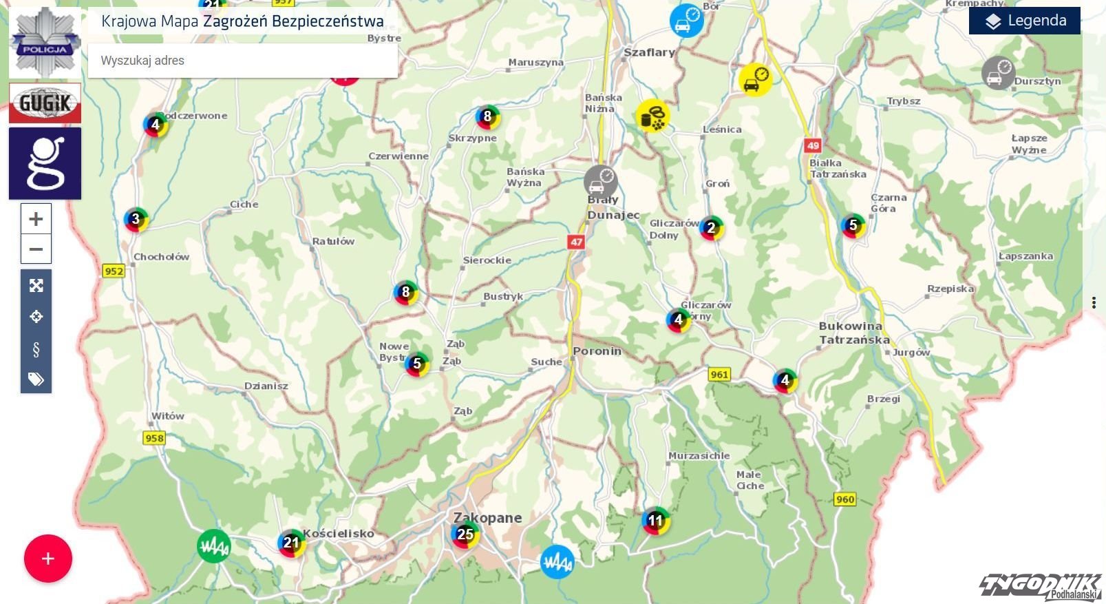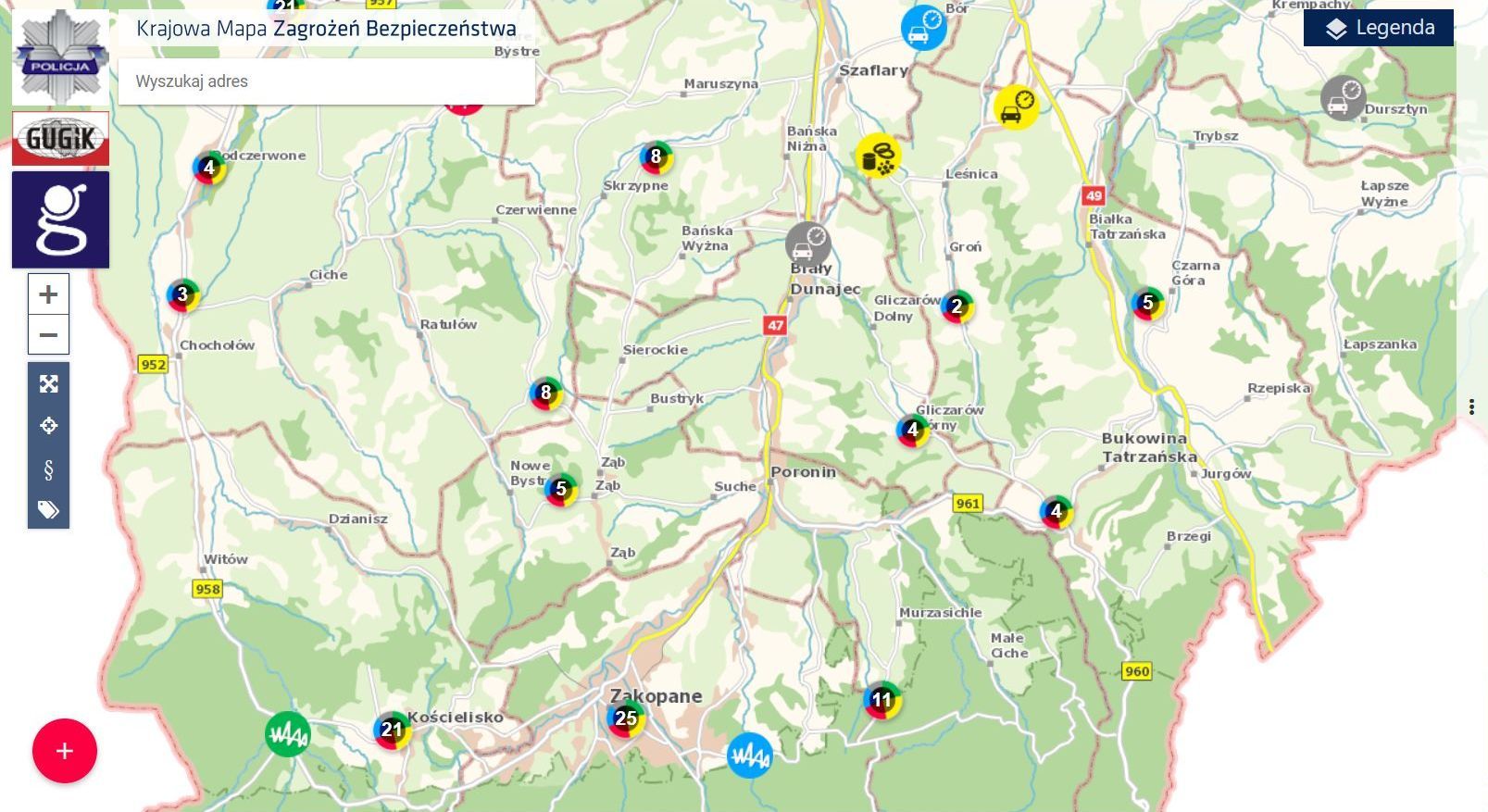 Ponad dwa tysiące niebezpiecznych sytuacji, każdy może skorzystać z policyjnej mapy zagrożeń