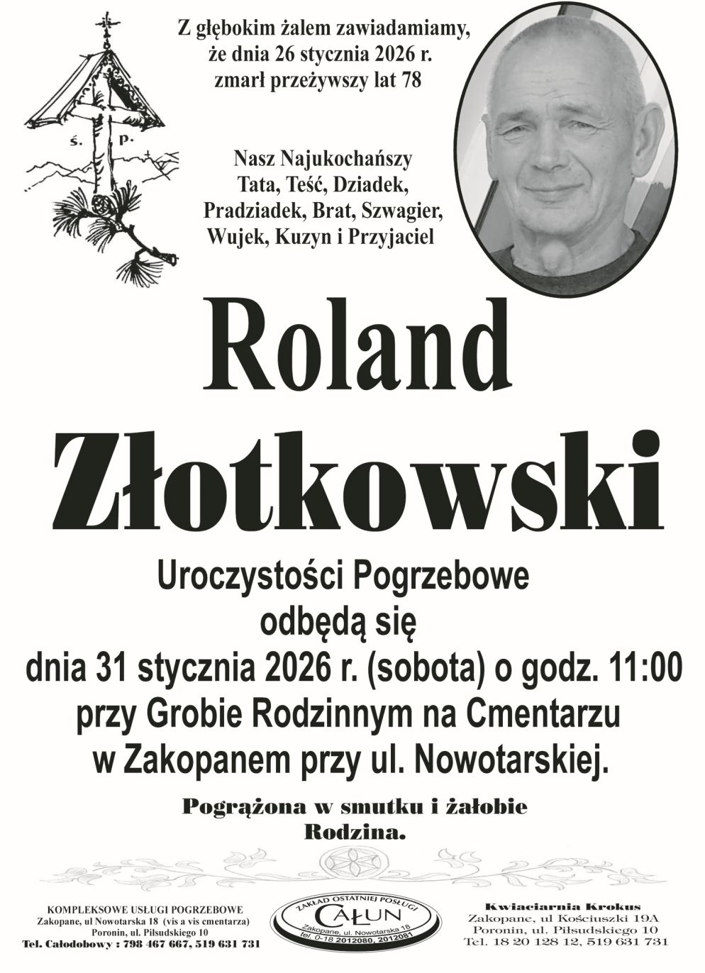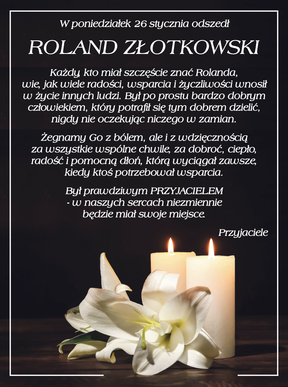 Z głębokim żalem zawiadamiamy, że odszedł Śp. Roland Złotkowski.