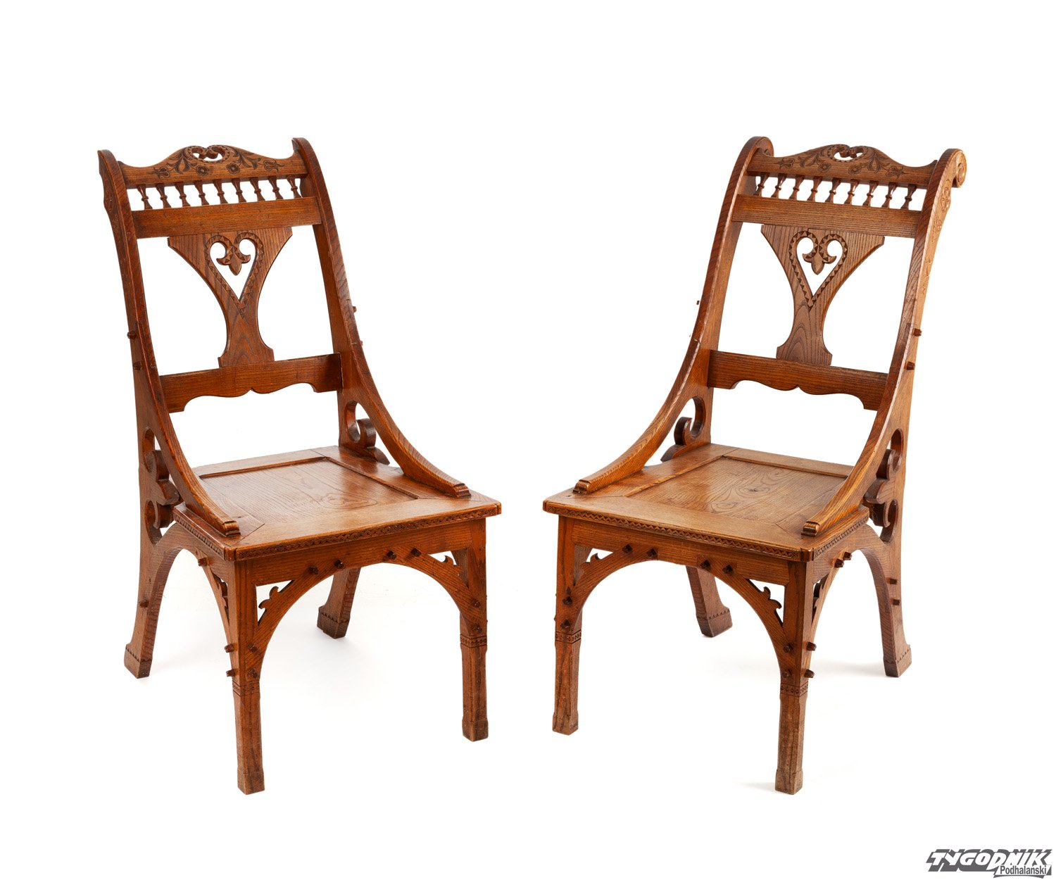 W stroju męskim ważną funkcję pełniła parzenica - ornament haftowany na portkach. Jej sercowaty, symetryczny kształt interpretowano jako znak siły życiowej, męskości i ochrony. Haft miał także funkcję praktyczną - umieszczano go w miejscach szczególnie narażonych na zużycie, dzięki czemu wzmacniał materiał. Z czasem bogactwo parzenicy stało się miarą prestiżu właściciela, a sam motyw zyskał status rozpoznawalnego znaku wizualnego regionu. Parzenica szybko przekroczyła również granice stroju, przenikając do architektury i rzemiosła meblarskiego. Doskonałym przykładem są projekty Stanisława Witkiewicza, jednego z najważniejszych twórców stylu zakopiańskiego, który ornamentykę inspirowaną haftem góralskim przełożył na język drewna. Prezentowany na wystawie fotel w stylu zakopiańskim według projektu Witkiewicza i Wojciecha Brzegi stanowi wariant z początku XX wieku. Jego forma nawiązuje do estetyki ludowej, a jednocześnie zdradza inspirację dużymi, drewnianymi saniami, obecnymi w codziennym krajobrazie Podhala.