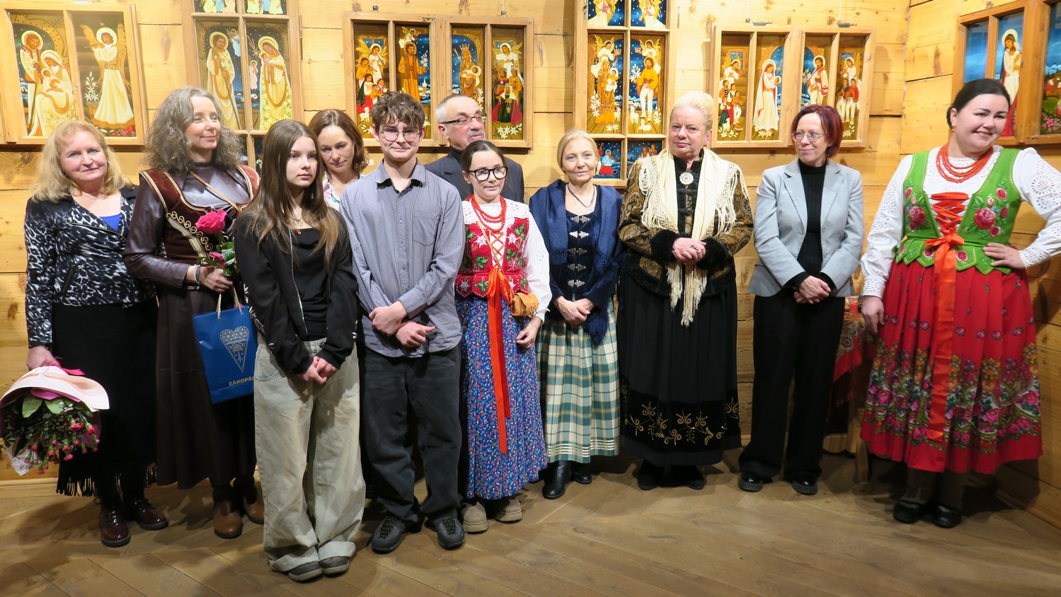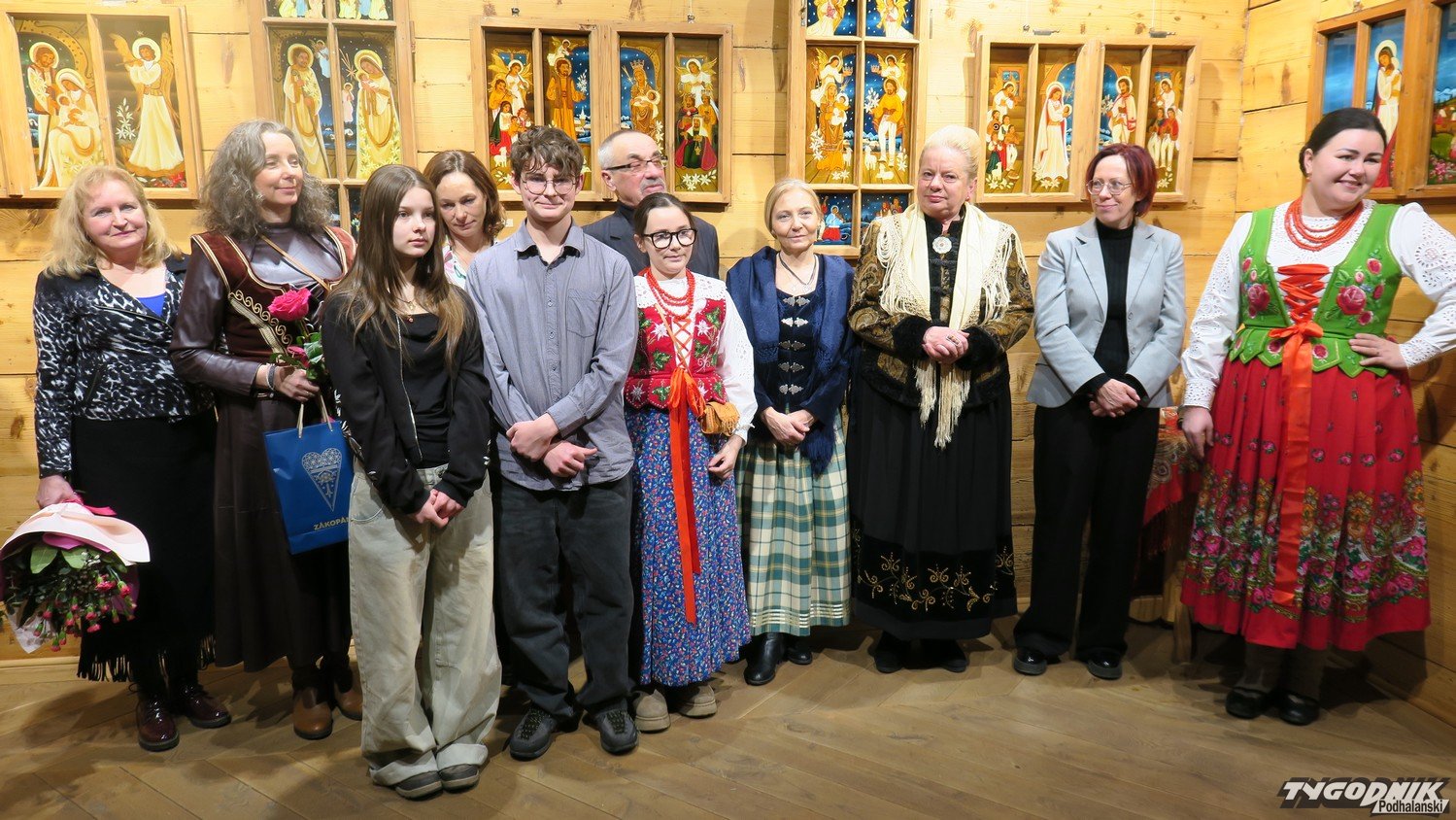 Wystawa nieprzypadkowo zagościła w willi Czerwony Dwór. To miejsce, gdzie Janina Maślanka wielokrotnie odnosiła sukcesy w ogólnopolskich konkursach malarstwa na szkle i rzeźby w drewnie: "Madonny Podhalańskie", "Oblicza Frasobliwego" czy "Rodzina". Ekspozycja jest nie tylko hołdem dla artystki, ale także świadectwem jej ogromnej roli w podtrzymywaniu i rozwijaniu regionalnej tradycji. O czym opowiadała Małgorzata Wonuczka-Wnuk, szefowa Centrum Kultury Rodzimej, Anna Szopińska, autorka tekstu do katalogu oraz Maciej, mąż Janiny Maślanki.