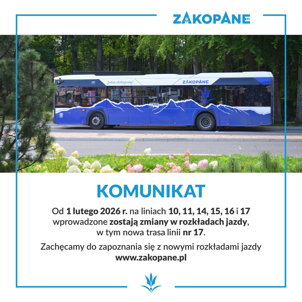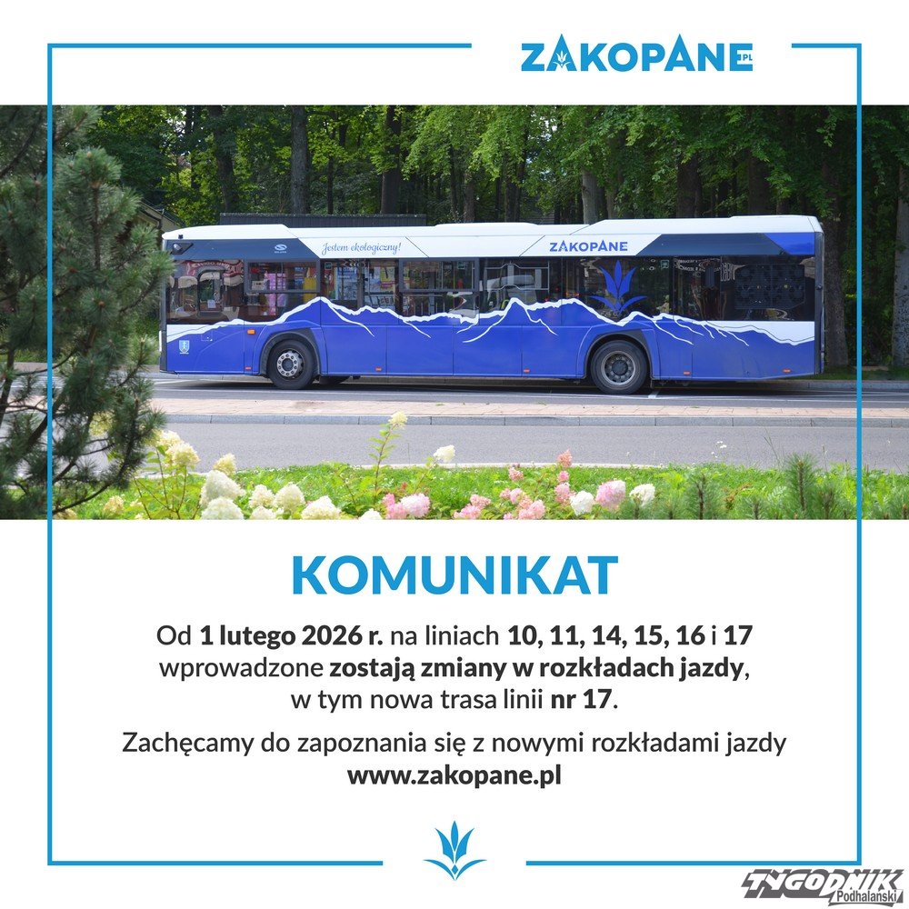 Od 1 lutego 2026 roku pasażerów komunikacji miejskiej czekają zmiany w rozkładach jazdy kilku linii autobusowych. Korekty obejmą linie nr 10, 11, 14, 15, 16 oraz 17. Najważniejszą nowością jest zmiana trasy linii nr 17.