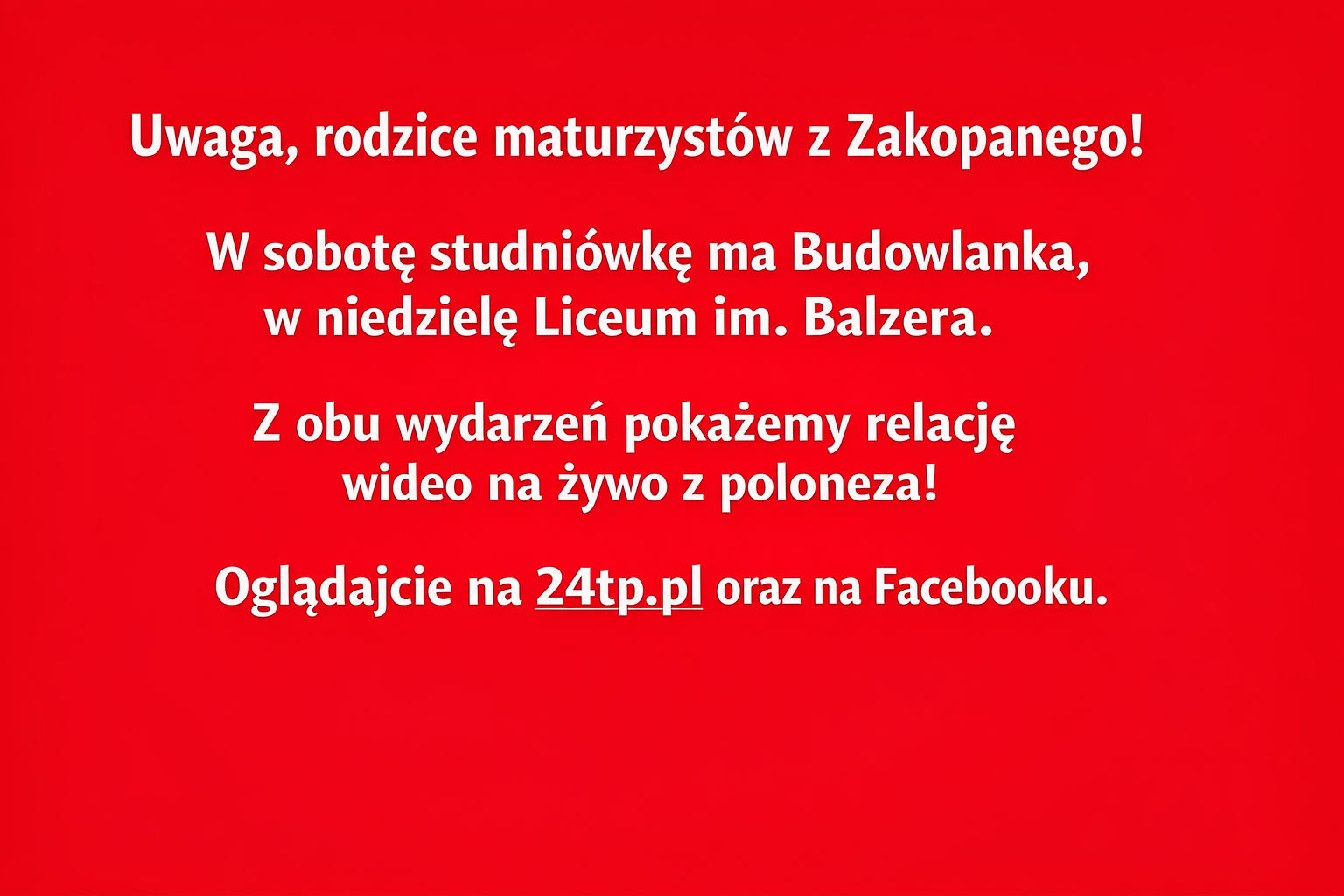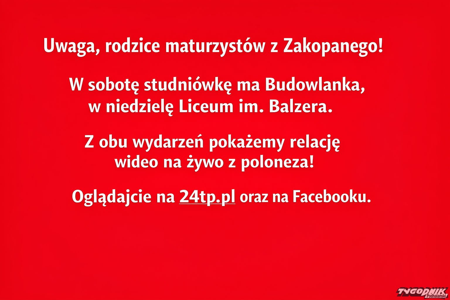 Uwaga, rodzice maturzystów zakopiańskiej Budowlanki oraz Liceum im. Balzera!