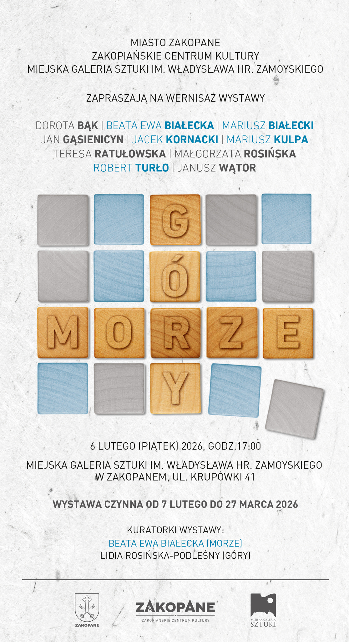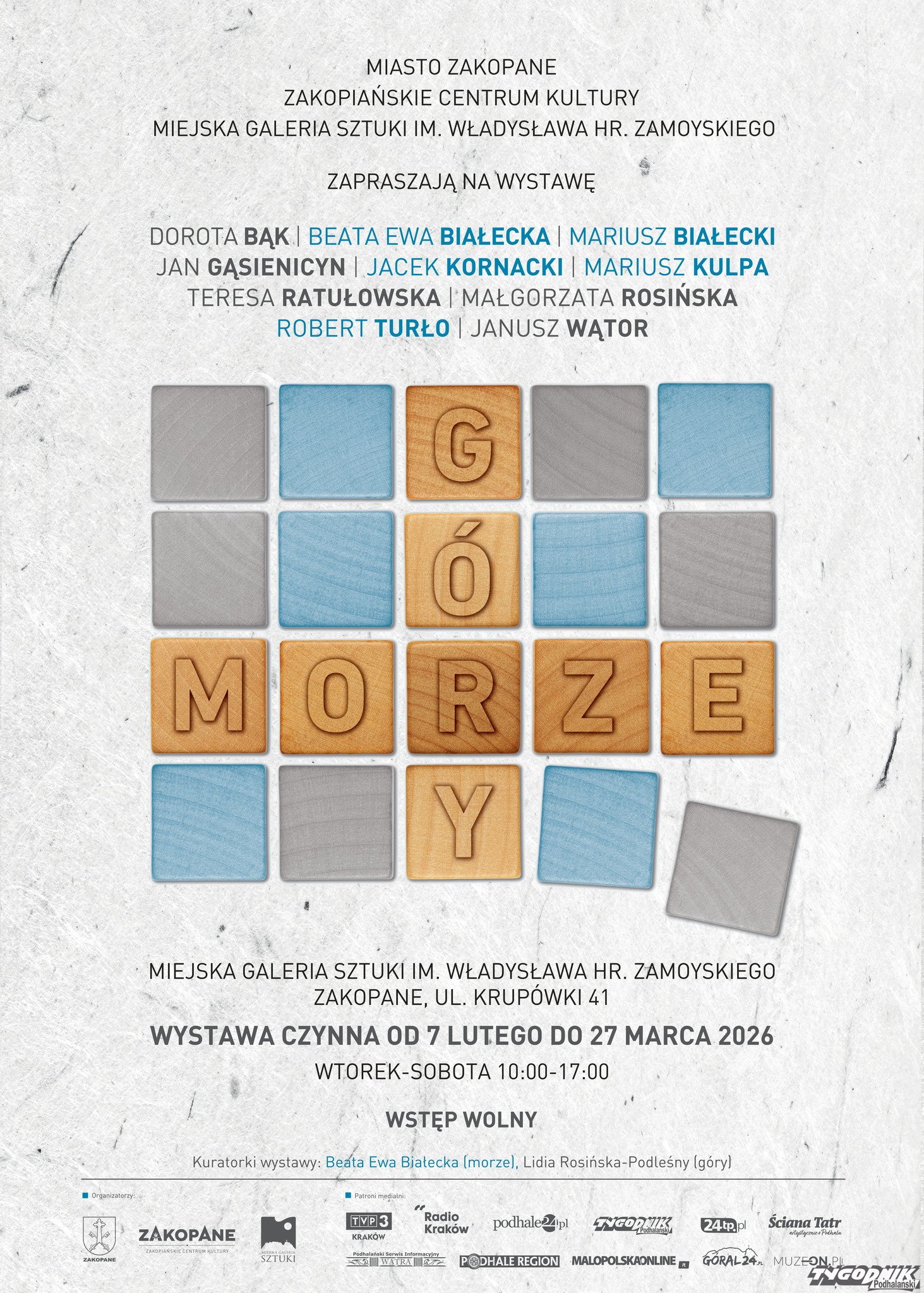 Od soboty 7.02 Miejska Galeria Sztuki im. Władysława hr. Zamoyskiego w Zakopanem zaprasza na piątą edycję autorskiego projektu wystawienniczego Lidii Rosińskiej-Podleśny "Góry - Morze - Morze - Góry.