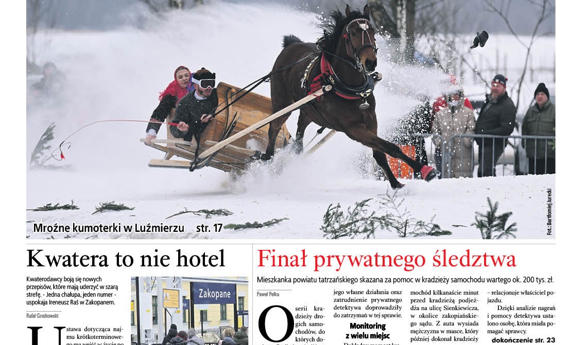 W papierowym wydaniu Tygodnika: Kwaterodawcy boją się nowych przepisów, które mają uderzyć w szarą strefę. - Jedna chałupa, jeden numer - uspokaja Ireneusz Raś w Zakopanem. Publikujemy też instrukcję dla właścicieli kwater - co będą musieli zrobić po wejściu w życie nowych przepisów.