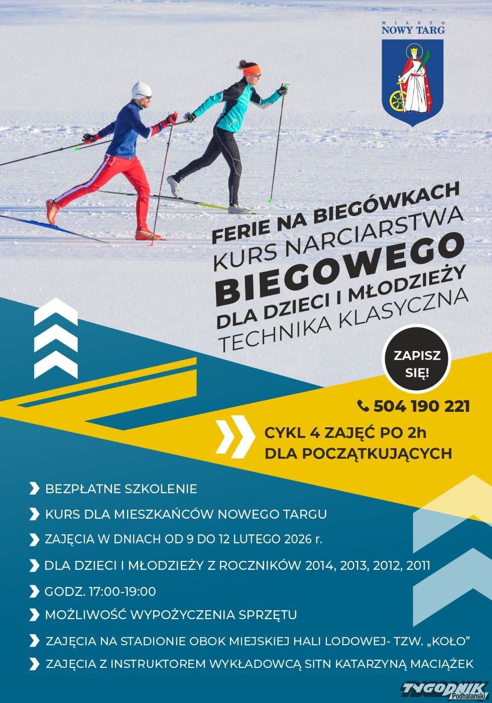 Organizatorzy zapraszają na kolejny bezpłatny kursu narciarstwa biegowego przygotowany przez Urząd Miasta w Nowym Targu.