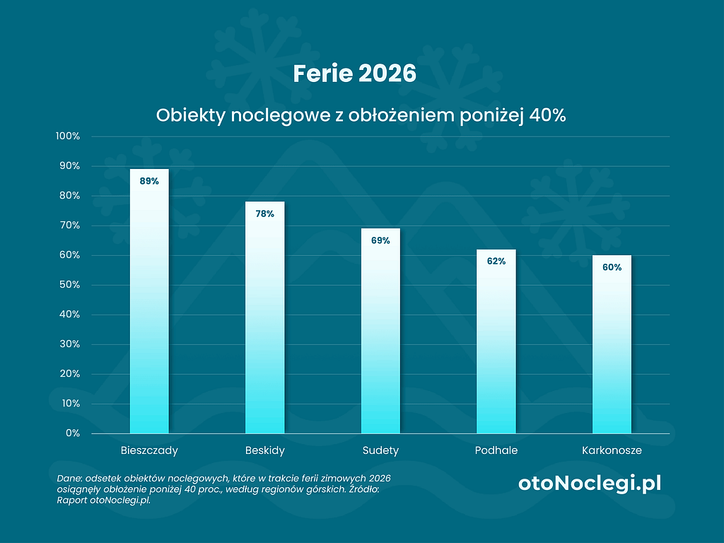Ferie 2026 rozczarowują: Niemal połowa właścicieli obiektów ugościła mniej turystów niż przed rokiem