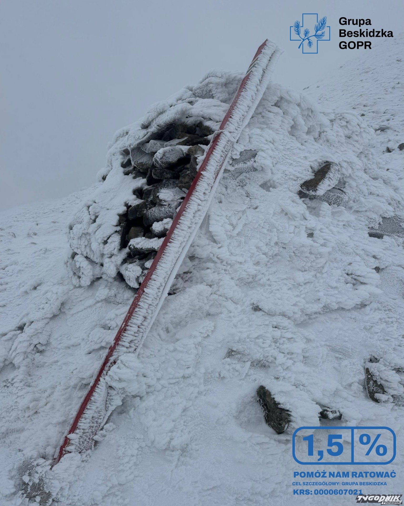 Zdewastowane zimowe oznakowanie szlaku na Babiej Górze