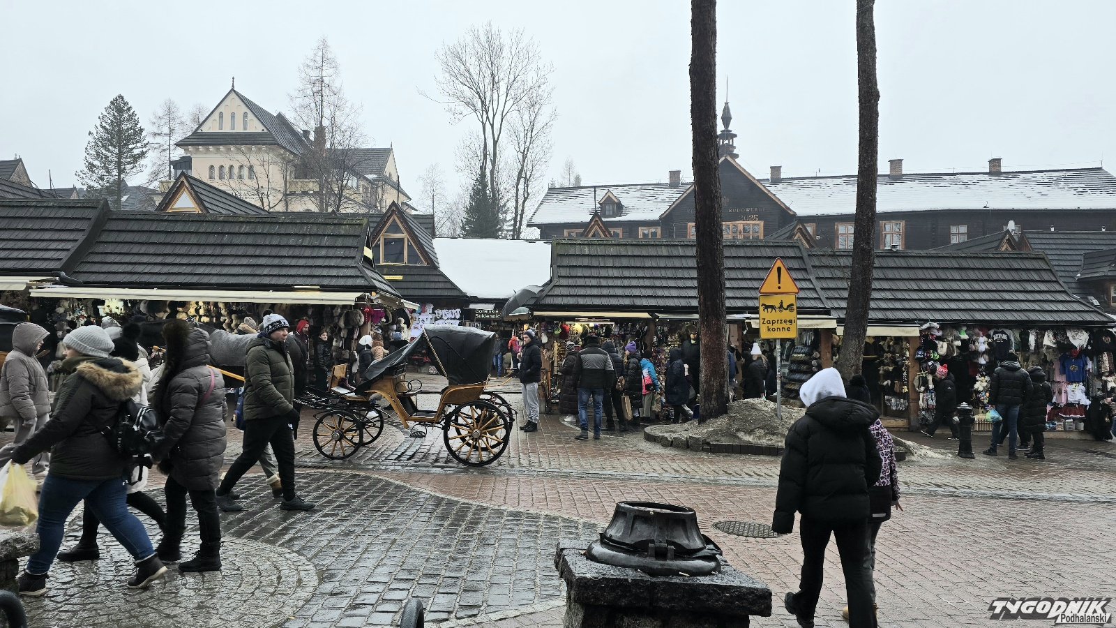 Termometry pokazują ok. 3 st. C. Pada mżawka, jest bardzo wilgotno. W taką pogodę niewiele osób zdecydowało się na wyjście w góry czy jazdę na nartach. Sporo turystów już od rana spaceruje po deptaku, na którym nie ma już nawet resztek śniegu. Około południa spotkaliśmy na Krupówkach dwie romskie kapele, jedną przy budynku Bazaru Polskiego, drugą przy zejściu do przejścia podziemnego.