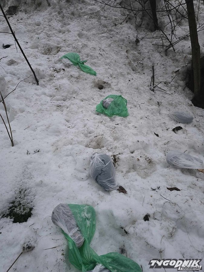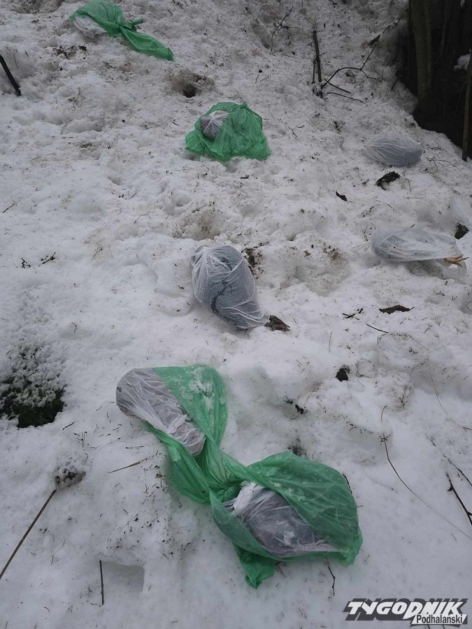 Podczas wizyty w swoim lesie prywatny właściciel terenu natknął się na niepokojące znalezisko na granicy miejscowości Krempachy i Dursztyn.