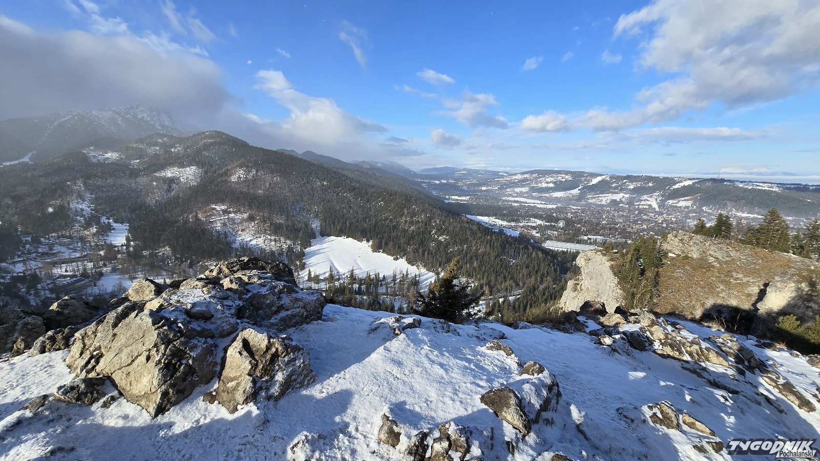 Na Kasprowym Wierchu w porywach prędkość wiatru przekracza 73 km na godz. W Zakopanem rośnie temperatura, jeszcze rano mieliśmy temperaturę poniżej zera, a już o godz. 10 termoemtry pokazują prawie 5 st. C. Najbliższe dni to trochę słońca, trochę chmur i znaczne ocieplenie. Miejscami na Podhalu termeomtry mogą pokazać nawet ponad 10 st. C. W kilkudniowych prognozach widać ochłodzenie i opady śniegu, ale to dopiero od niedzieli-poniedziałku. Do tego czasu odwilż. Dziś rano odwiedziliśmy Nosal. Miejscami szlak z Kuźnic śliski, trzeba używać raczki.