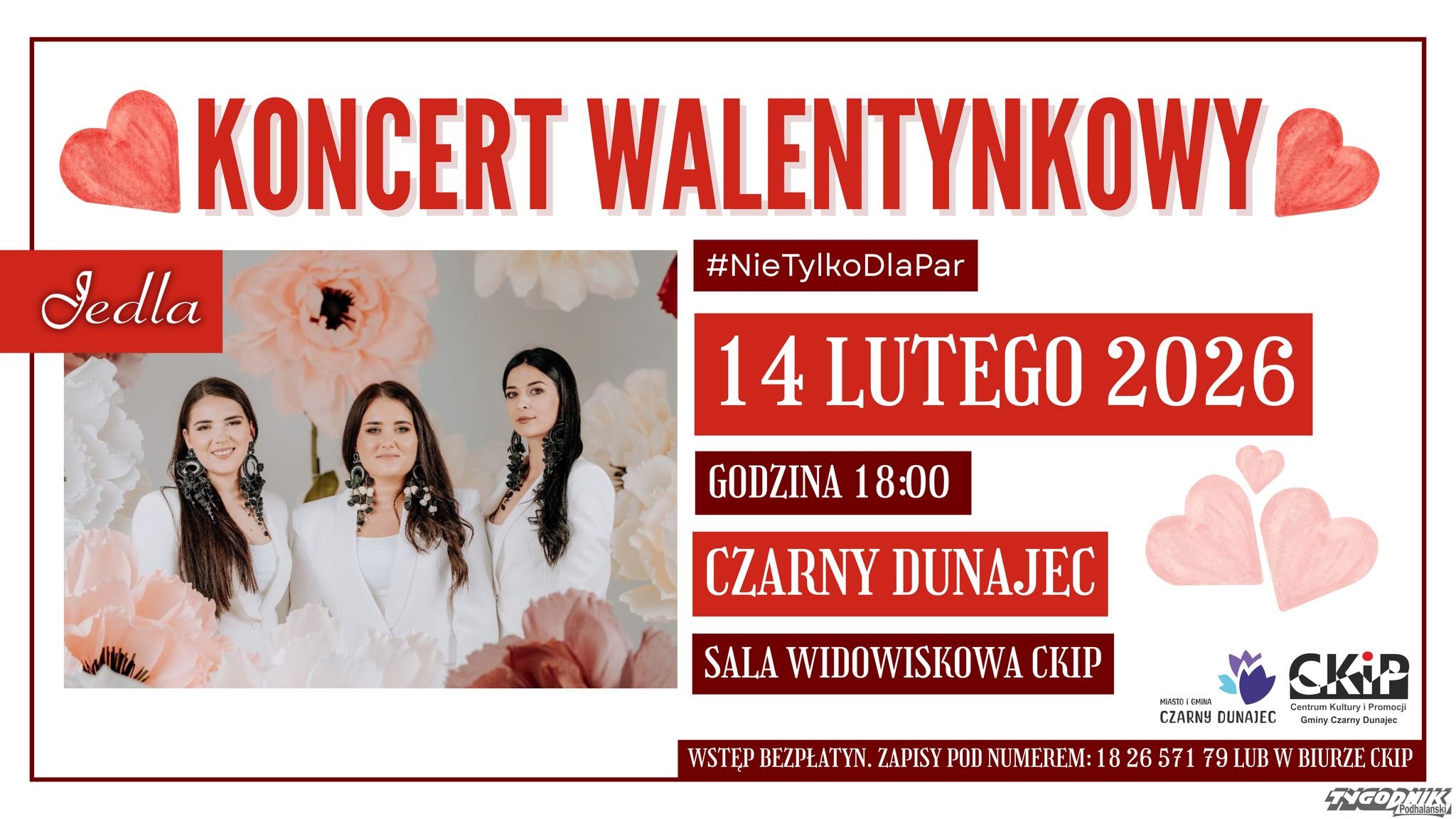 Ważna informacja: Wstęp jest bezpłatny, ale obowiązują wcześniejsze rezerwacje miejsc telefoniczne - 18 26 571 79 lub osobiste w biurze CKiP.
