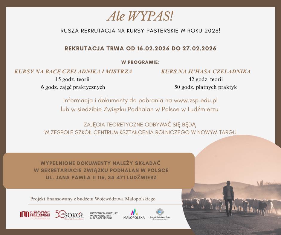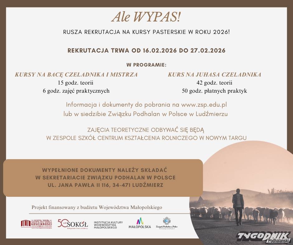 ALE WYPAS. Pod tym hasłem po raz kolejny ruszają kursy na bacę i juhasa, organizowane przez Małopolską Szkołę Gościnności w Myślenicach.
