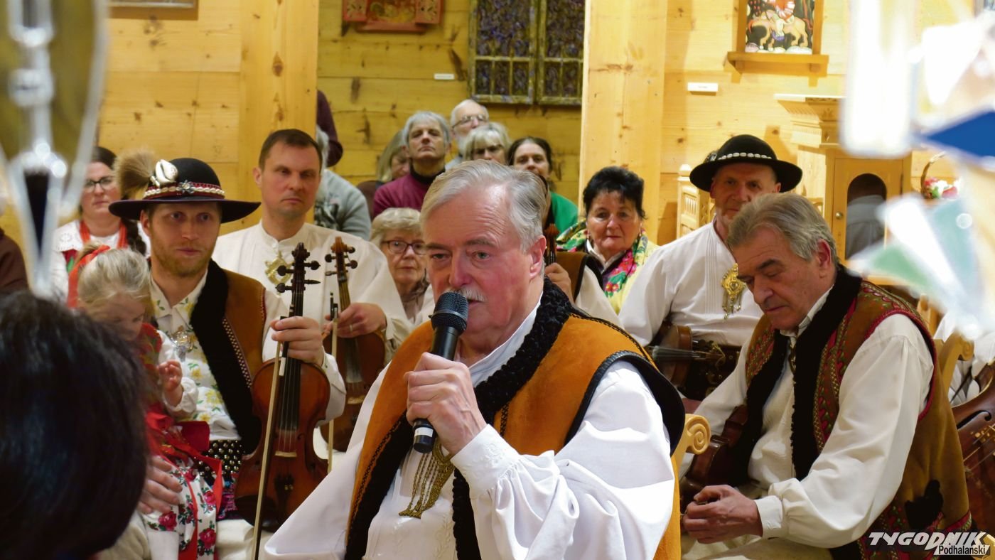 Licznie przybyłych gości witała muzyka złożona z zaprzyjaźnionych muzykantów, którzy swą obecnością uhonorowali kolegę i nauczyciela. Rozmówców krótko przedstawiła Małgorzata Wonuczka-Wnuk, szefowa Centrum Kultury Rodzimej w Willi "Czerwony Dwór". - Cieszę się, że jest nas tak dużo - podkreśliła kierownik Centrum. Wśród licznie przybyłych gości powitała Macieja Szostaka, dyrektora Zakopiańskiego Centrum Kultury, księdza doktora habilitowanego Bolesława Zarębczana, Jana Smolenia, prezesa Stowarzyszenia Lachów Sądeckich, Helenę Buńdę, sekretarz Starostwa Tatrzańskiego, Jana Bukowskiego, prezesa Związku Podhalan w Dzianiszu z Anną Dąb, wiceprezes ZP - Obchodzili ostatnio wspaniałe uroczystości stulecia oddziału Związku Podhalan w Dzianiszu. Gratuluję organizacji z tej okazji - przypomniała Małgorzata Wonuczka-Wnuk. Na spotkanie dotarł też Stanisław Gąsienica-Wawrytko, prezes oddziału Tatrzańskiego Stowarzyszenia Twórców Ludowych.