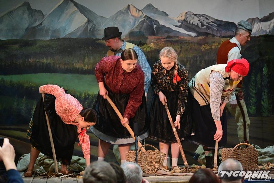 Widownia mogła przenieść się do czasów, które wcale nie są tak odległe – gdy wełnę trzeba było cuchrać, grule kopać motyką, a z namowinami posyłać swatów. Te sceny, pełne humoru i autentyczności, dostarczyły publiczności mnóstwa pozytywnej energii i wzruszeń.