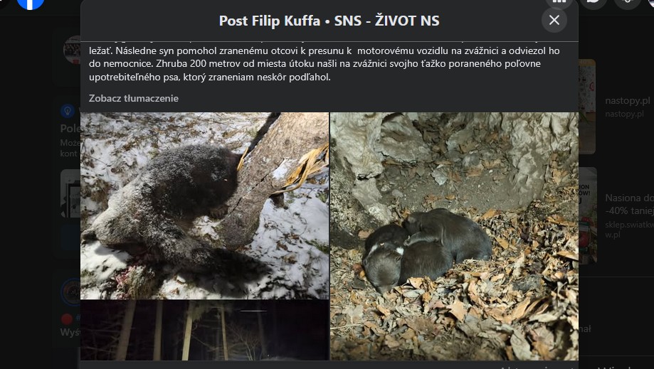 Karmiąca niedźwiedzica została zastrzelona na Słowacji