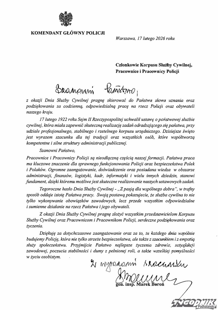Z okazji Dnia Służby Cywilnej kierownictwo Komenda Powiatowa Policji w Zakopanem skierowało życzenia i podziękowania do wszystkich pracowników korpusu służby cywilnej.
