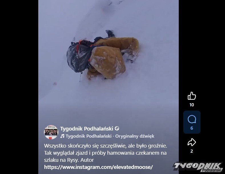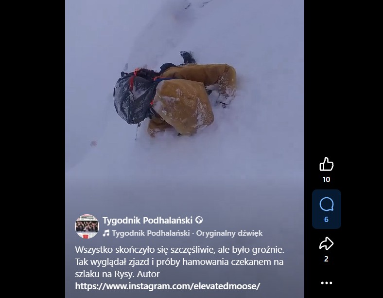 Na filmiku poniżej możecie zobaczyć, jak wygląda zjazd turysty ze szlaku na Rysy i próby hamowania czekanem. Opis autora filmu: